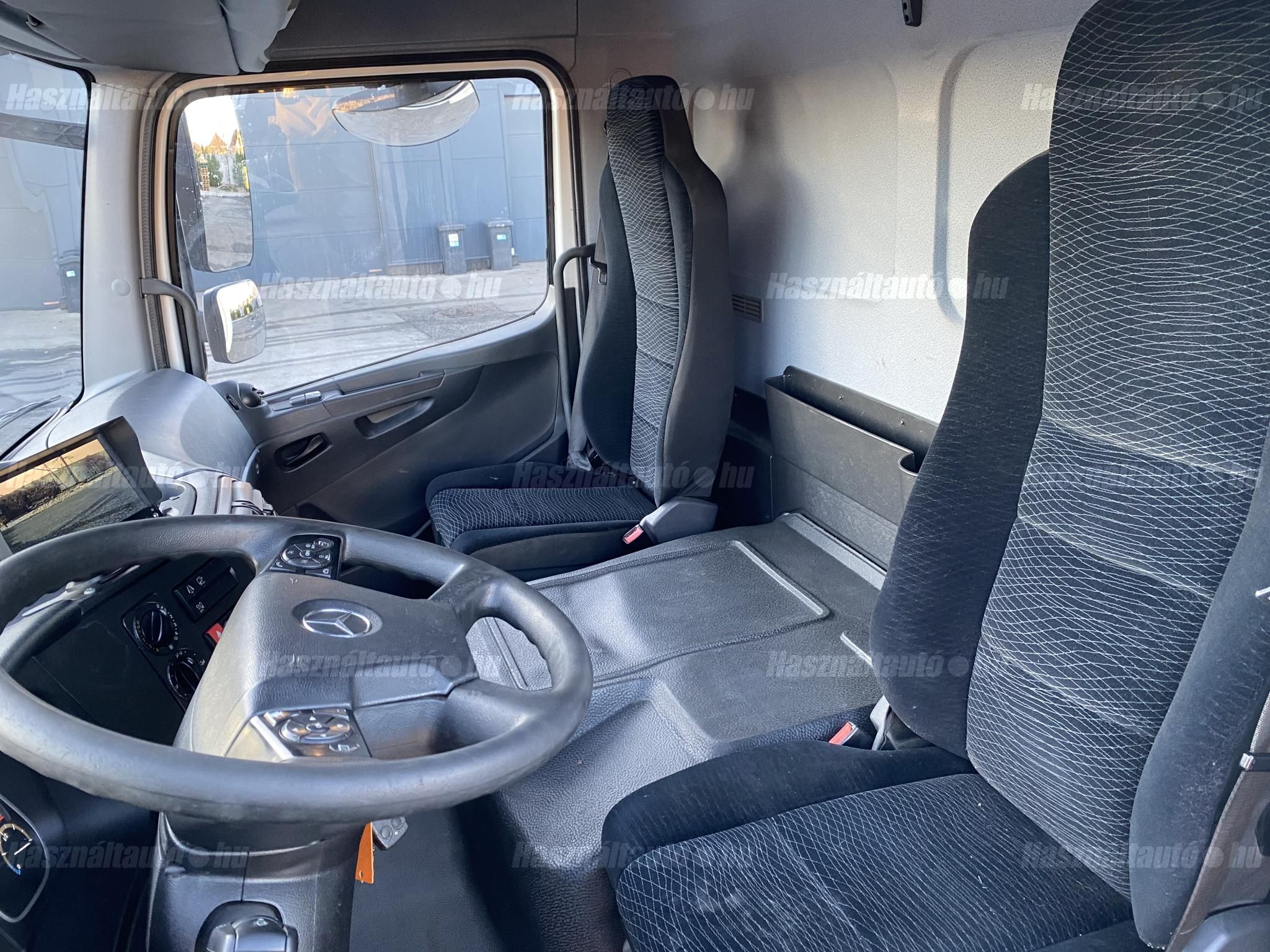 Mercedes Atego 1221, EU6, függönyponyva+doboz, automata váltó, tárcsafék, elől laprugó, hátul légrugó. Manuális klíma, állítható kormány, központi zár, tempomat, ABS, EBS, elektromos ablakok és tükrök, tükörfűtés, ülésfűtés, aláfutásgátló, rádió, légterelő, pótkerék tartó, Ad-blue, sávtartó és távolságtartó elektronika, tolatókamera. Tengelytávolság: 5,9m. Plató hossza: 8,5m, szélessége: 2,5m, magassága: 2,75m. Gumiméret: 265/70 R19,5. Gumiállapot elől ca. 70%, hátul ca. 85%. Önsúly: 7,800, össztömeg: 11,990kg, hasznos: 4,190kg. Igény szerint friss műszakival! Akár nettó áron (áfa mentesen) is megvásárolhatják az uniós adószámmal rendelkező cégek. A hirdetésben szereplő Forintos ár 387 huf/euróra vonatkozó ár! Pontos forintos ár az aktuális napi euró MNB árfolyamától függően kerül kialakításra!