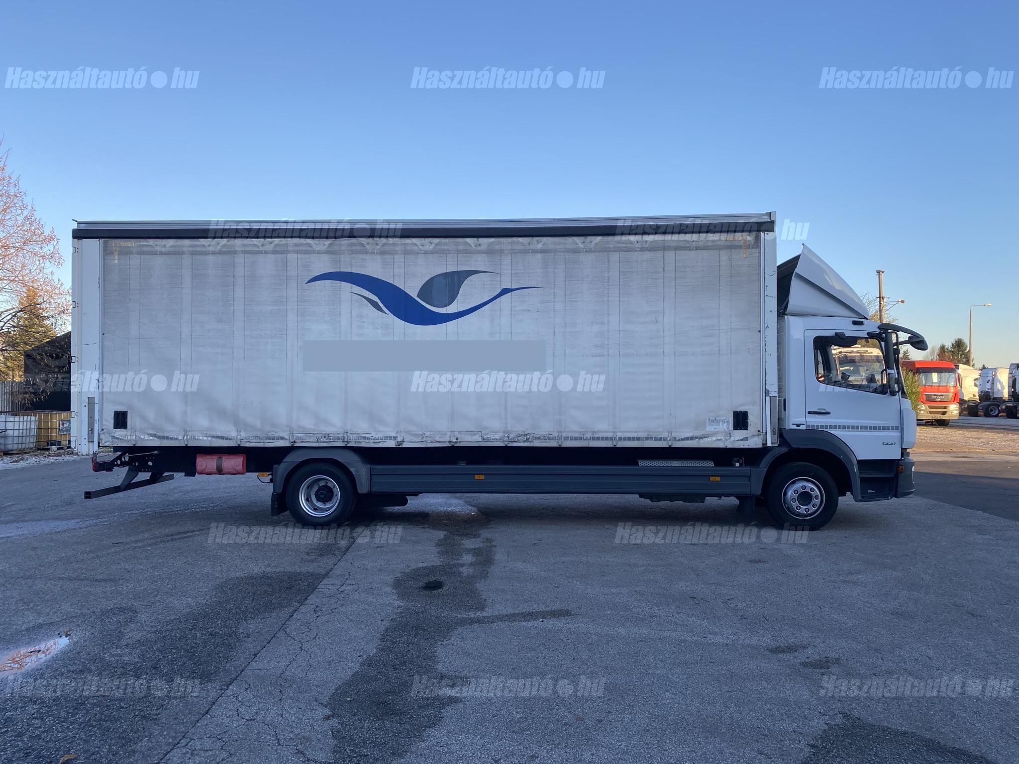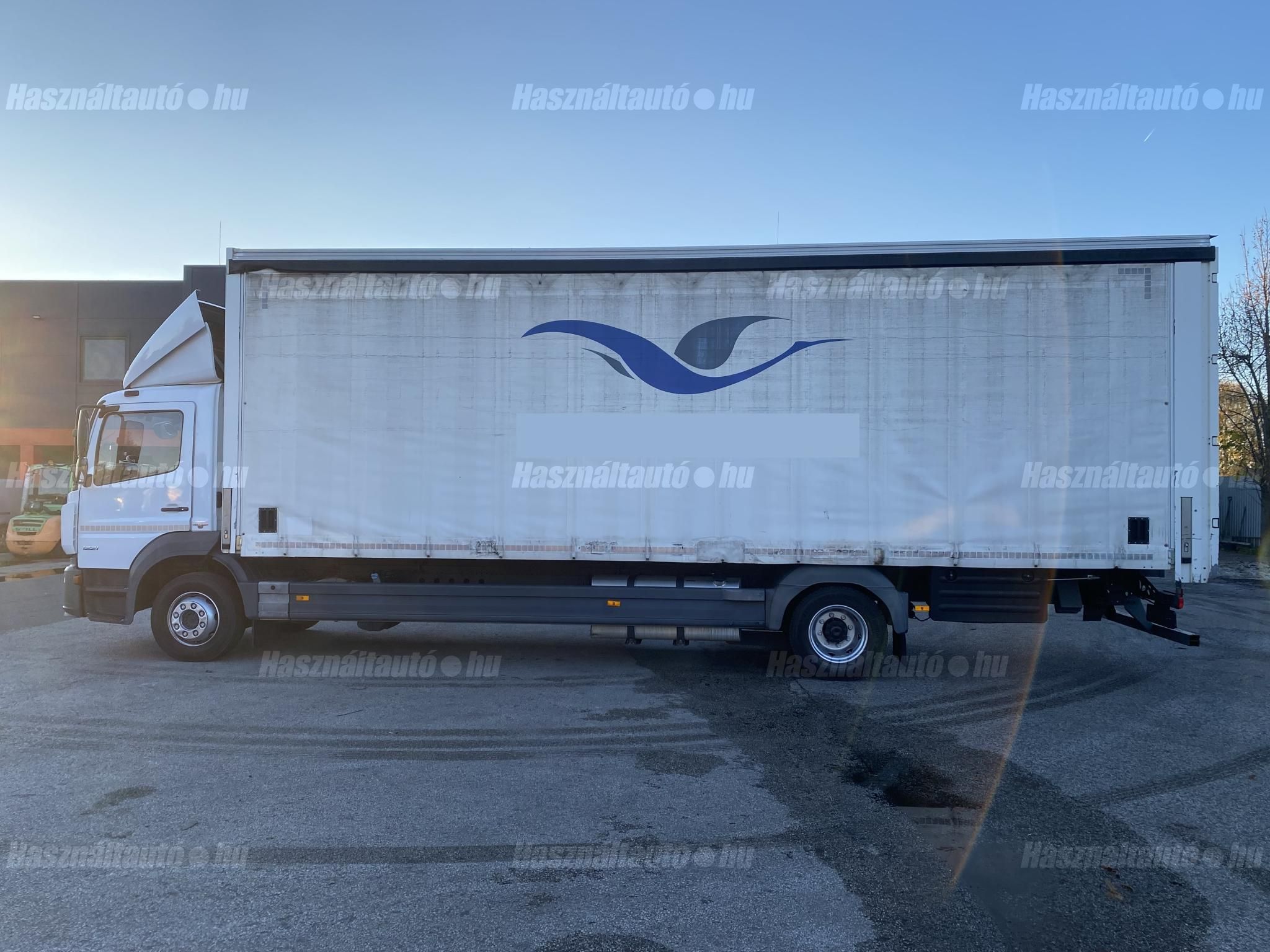 Mercedes Atego 1221, EU6, függönyponyva+doboz, automata váltó, tárcsafék, elől laprugó, hátul légrugó. Manuális klíma, állítható kormány, központi zár, tempomat, ABS, EBS, elektromos ablakok és tükrök, tükörfűtés, ülésfűtés, aláfutásgátló, rádió, légterelő, pótkerék tartó, Ad-blue, sávtartó és távolságtartó elektronika, tolatókamera. Tengelytávolság: 5,9m. Plató hossza: 8,5m, szélessége: 2,5m, magassága: 2,75m. Gumiméret: 265/70 R19,5. Önsúly: 7,800, össztömeg: 11,990kg, hasznos: 4,190kg. Igény szerint friss műszakival! Akár nettó áron (áfa mentesen) is megvásárolhatják az uniós adószámmal rendelkező cégek. A hirdetésben szereplő Forintos ár 387 huf/euróra vonatkozó ár! Pontos forintos ár az aktuális napi euró MNB árfolyamától függően kerül kialakításra!