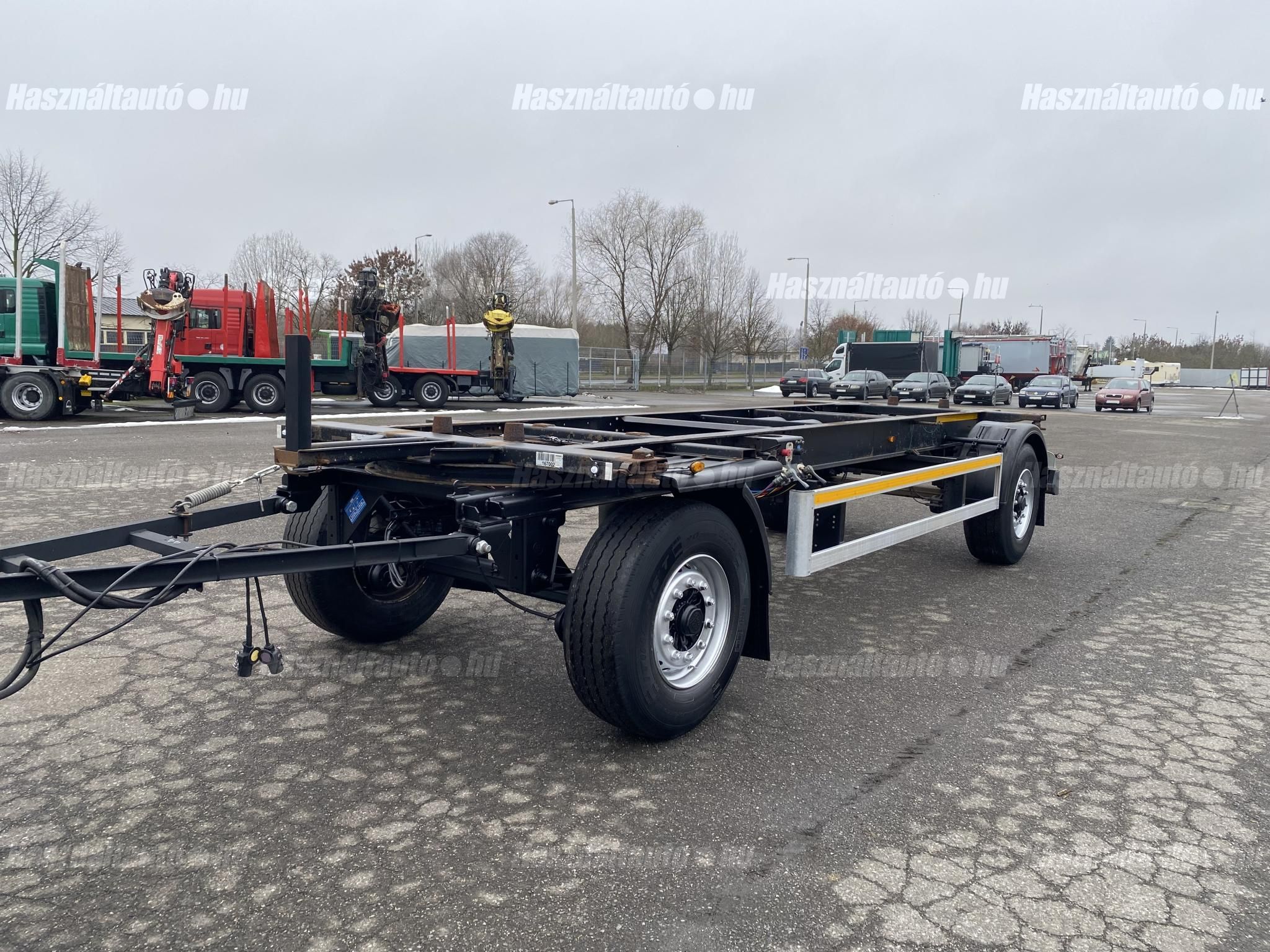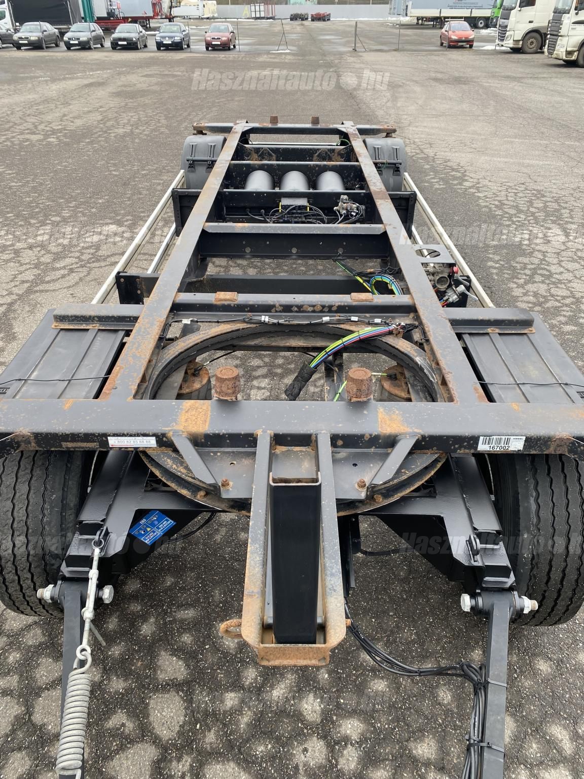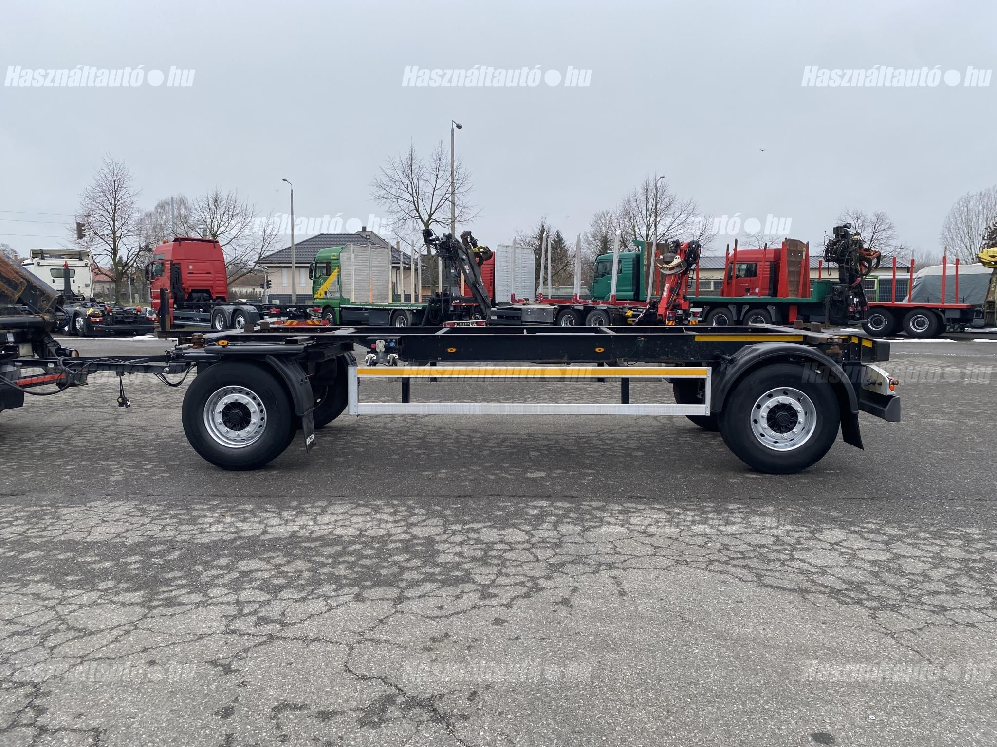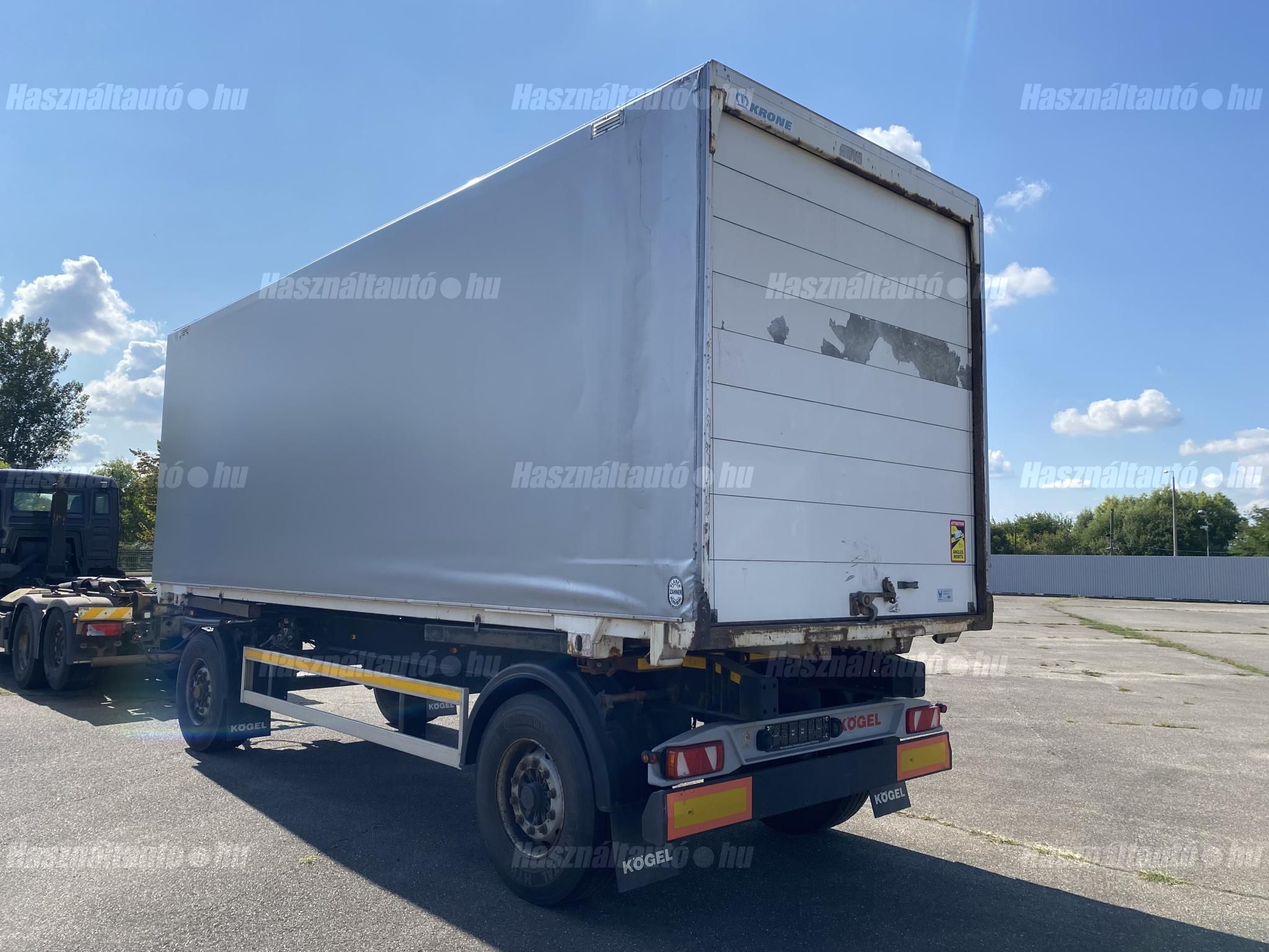 KÖGEL AW BDF pótkocsi, BPW Eco Plus tengelyek, tárcsafék, légrugó, ABS, EBS, aláfutásgátló. Az első ütköző távolsága az első rögzítési ponttól: 80cm. Tengelytávolság: 5m. Gumiméret: 385/65 R22,5. Gumiállapot ca. 65%. Önsúly: 2,640kg, össztömeg: 18,000kg, hasznos: 15,360kg. Igény szerint friss műszakival! Uniós adószámmal rendelkező cégek igény szerint áfa mentesen ( nettó) is megvásárolhatják. A hirdetésben szereplő Forintos ár 380 huf/euróra vonatkozó ár! Pontos forintos ár az aktuális napi euró MNB árfolyamától függően kerül kialakításra! Igény szerint felépítménnyel együtt. Felépítmény: KRONE WK7,3RSTG BDF doboz felépítmény (külső ponyva borítás), melynek hossza: 7,3m, szélessége: 2,5m, magassága: 2,5m. A felépítmény önúlya: 2,860kg, össztömeg: 16,000kg, hasznos: 13,140kg.