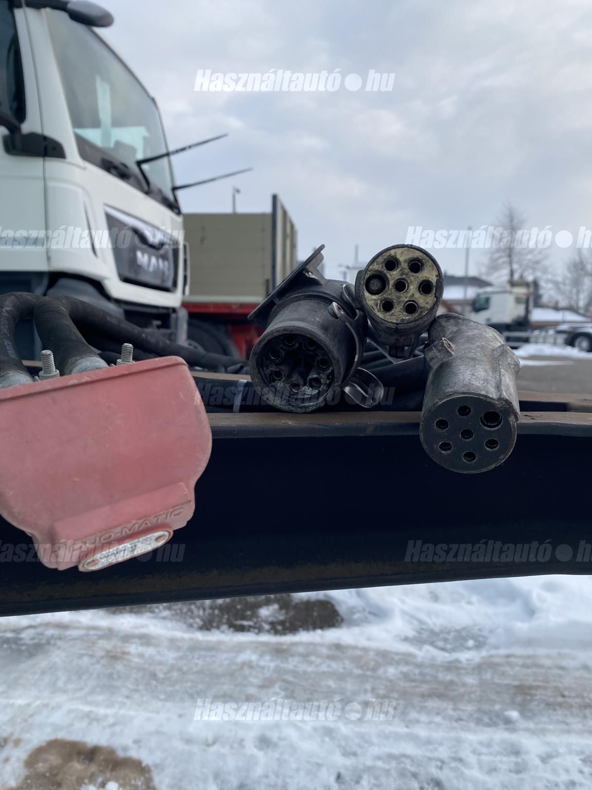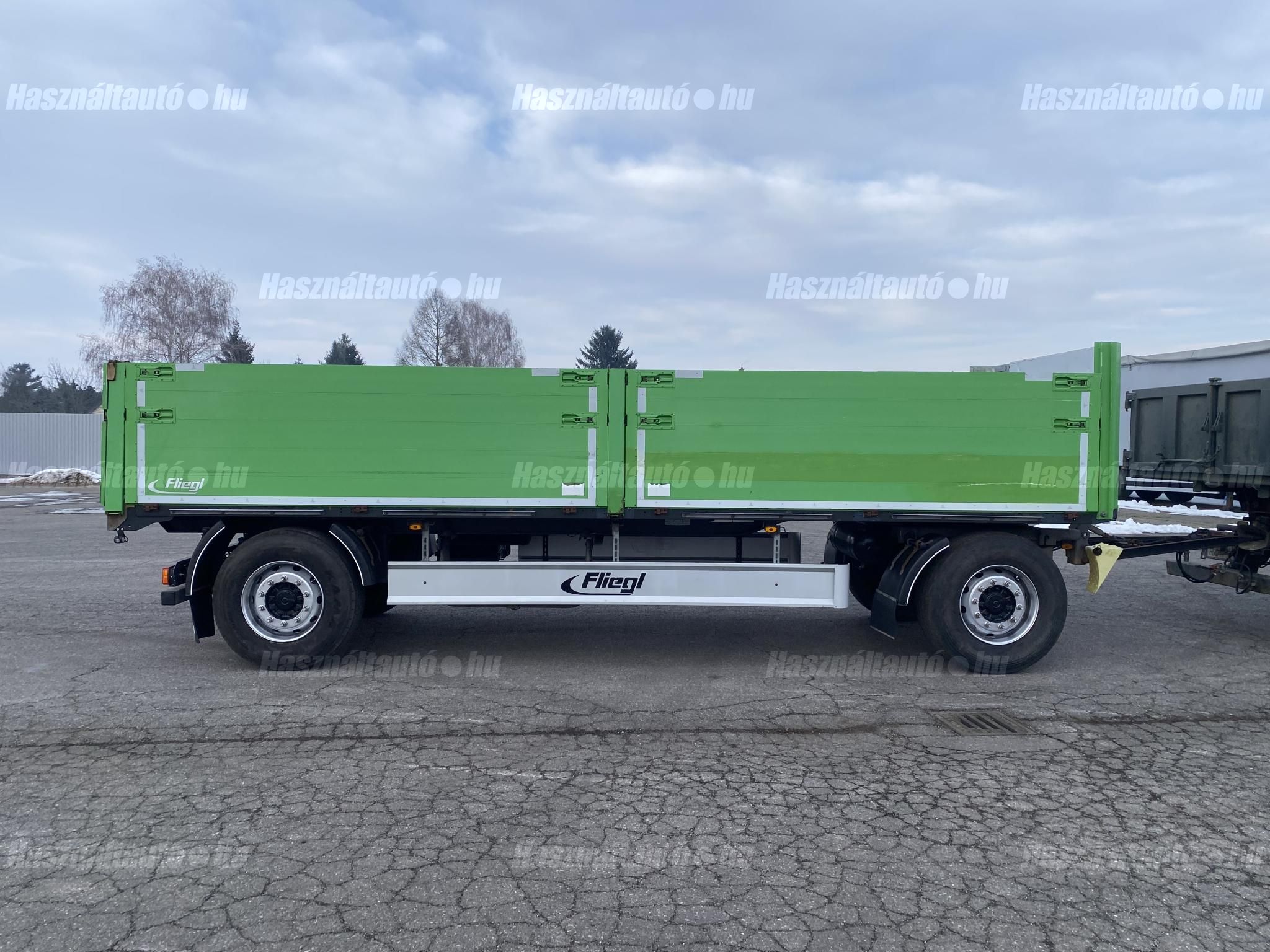 FLIEGL ZPS 180 építőipari pótkocsi, tárcsafék, légrugó, SAF tengelyek, ABS, EBS, aláfutásgátló, pótkerék tartó. Tengelytávolság: 5,2m. Plató hossza: 7,3m, szélessége: 2,5m, magassága: 1m. Gumiméret: 385/65 R22,5, gumiállapot ca. 65%. Önsúly: 3,500kg, össztömeg: 18,000kg, hasznos: 14,500kg. Igény szerint friss műszakival! Uniós adószámmal rendelkező cégek igény szerint áfa mentesen ( nettó) is megvásárolhatják. A hirdetésben szereplő Forintos ár 380 huf/euróra vonatkozó ár! Pontos forintos ár az aktuális napi euró MNB árfolyamától függően kerül kialakításra!