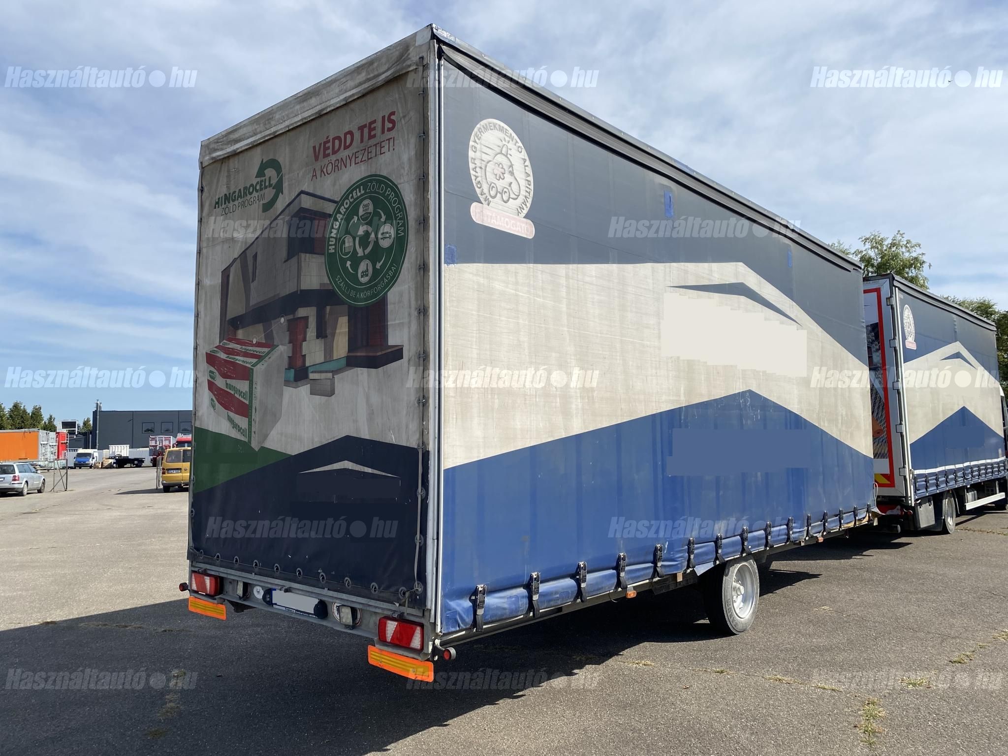 JUMBO ponyvás pótkocsi, dobfék (ráfutófék), torziós rugózás, KNOTT tengely, függönyponyva, pótkerék. Plató hossza: 7,6m, szélessége: 2,55m magassága: 3m. Gumiméret: 215/75 R17,5. Gumiállapot ca. 65%. Önsúly: 1,500kg, össztömeg: 3,300kg, hasznos: 1,800kg. Igény szerint friss műszakival! (591, 158170) Igény szerint szerelvényben is. Teherautó: MAN TGL 8.220 függönyponyva, hátsó portálajtó, EU6, kézi váltó, tárcsafék, elől laprugó, hátul légrugó. Digitális klíma, állítható kormány, állófűtés, központi zár, differenciálzár, tempomat, ABS, EBS, ASR, ESC, távolságtartó- és sávtartó elektronika, elektromos ablakok és tükrök, tükörfűtés, aláfutásgátló, rádió, légterelő, pótkerék, 2 ágy, Ad-blue, hűtő, vonófej (vontatás: 11,280kg). Tengelytávolság: 5,2m. Plató hossza: 7,2m, szélessége: 2,5m, magassága: 3m. Gumiméret elől: 225/75 R17,5, hátul: 215/75 R17,5. Gumiállapot elől ca. 60%, hátul ca. 85%. Önúly: 5,590kg, össztömeg: 8,600kg, hasznos: 3,010kg. Igény szerint friss műszakival! A hirdetésben szereplő Forintos ár 387 huf/euróra vonatkozó ár! Pontos forintos ár az aktuális napi euró MNB árfolyamától függően kerül kialakításra! (752, 158003)