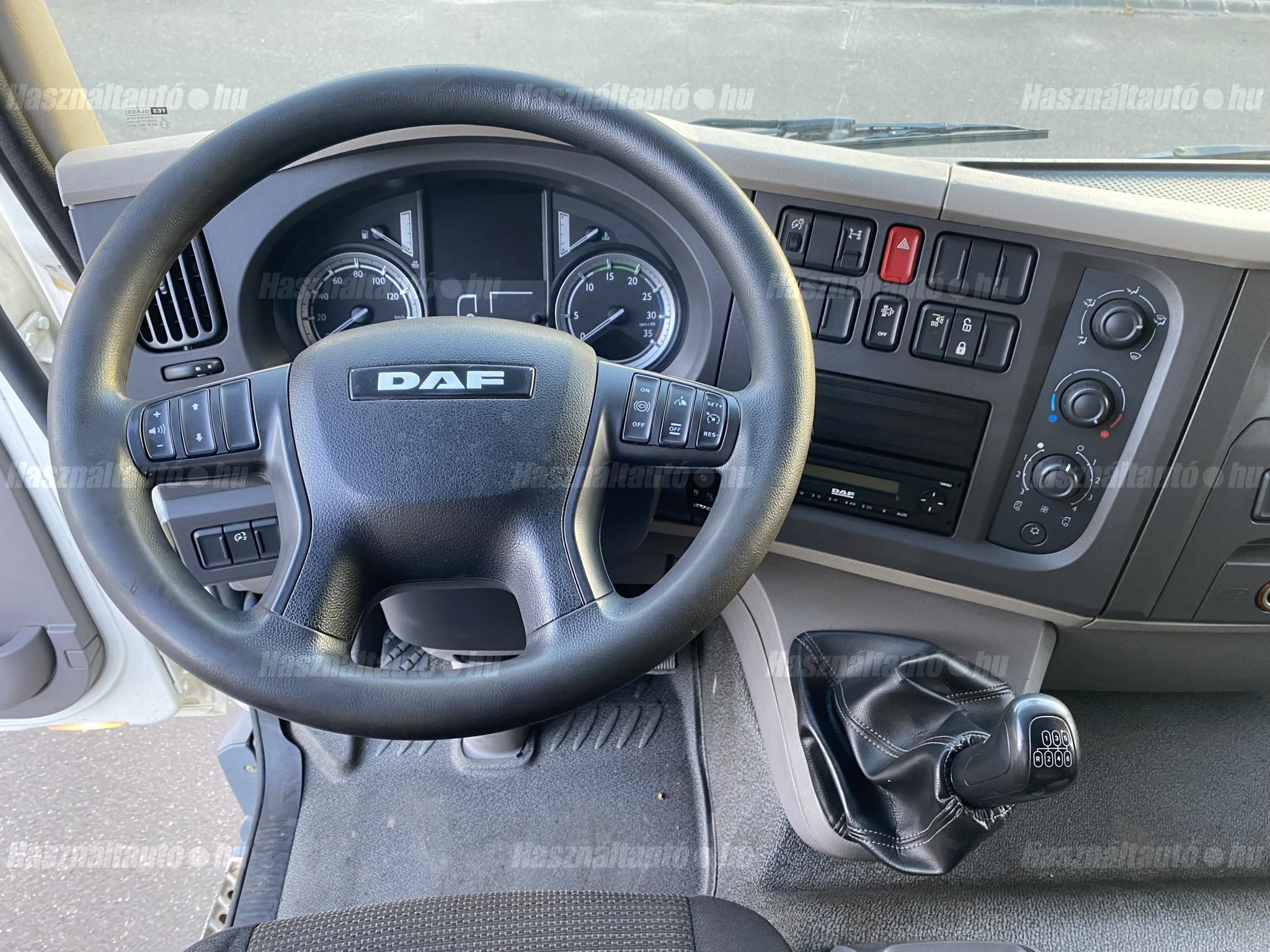 DAF LF 180, EU6, kézi váltó, tárcsafék, elől laprugó, hátul légrugó. Manuális klíma, állítható kormány, állófűtés, központi zár, differenciálzár, tempomat, ABS, EBS, elektromos ablakok és tükrök, tükörfűtés, aláfutásgátló, rádió, légterelő, 1 ágy, Ad-blue, függönyponyva. Tengelytávolság: 5,35m. Plató hossza: 7,2m, szélessége: 2,5m, magassága: 2,61m. 40 cm magas alu oldalfal. Gumiméret: 225/75 R19,5, gumiállapot ca. 70%. Önsúly: 4300kg, össztömeg: 7,490kg, hasznos: 3200kg. Igény szerint friss műszakival! A hirdetésben szereplő Forintos ár 387 huf/euróra vonatkozó ár! Pontos forintos ár az aktuális napi euró MNB árfolyamától függően kerül kialakításra!