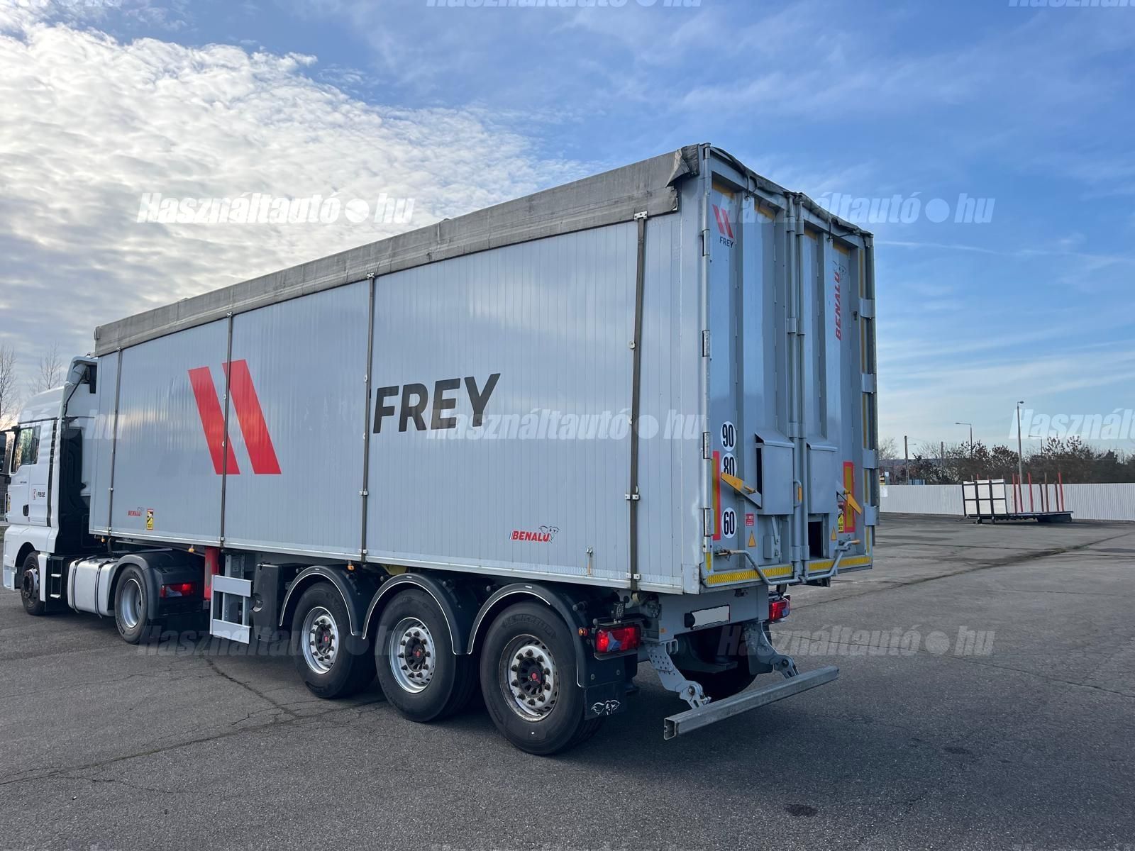 BENALU OPTILINER alu billencs pótkocsi, 58m3, tárcsafék, légrugó, BPW tengelyek. ABS, EBS, aláfutásgátló, ponyva, 2 db gabonaablak. Plató hossza: 9,5m, szélessége: 2,55m, magassága: 2,4m. Önsúly: 6,150kg. Igény szerint friss műszakival! Akár nettó áron (áfa mentesen) is megvásárolhatják az uniós adószámmal rendelkező cégek. A hirdetésben szereplő Forintos ár 387 huf/euróra vonatkozó ár! Pontos forintos ár az aktuális napi euró MNB árfolyamától függően kerül kialakításra!