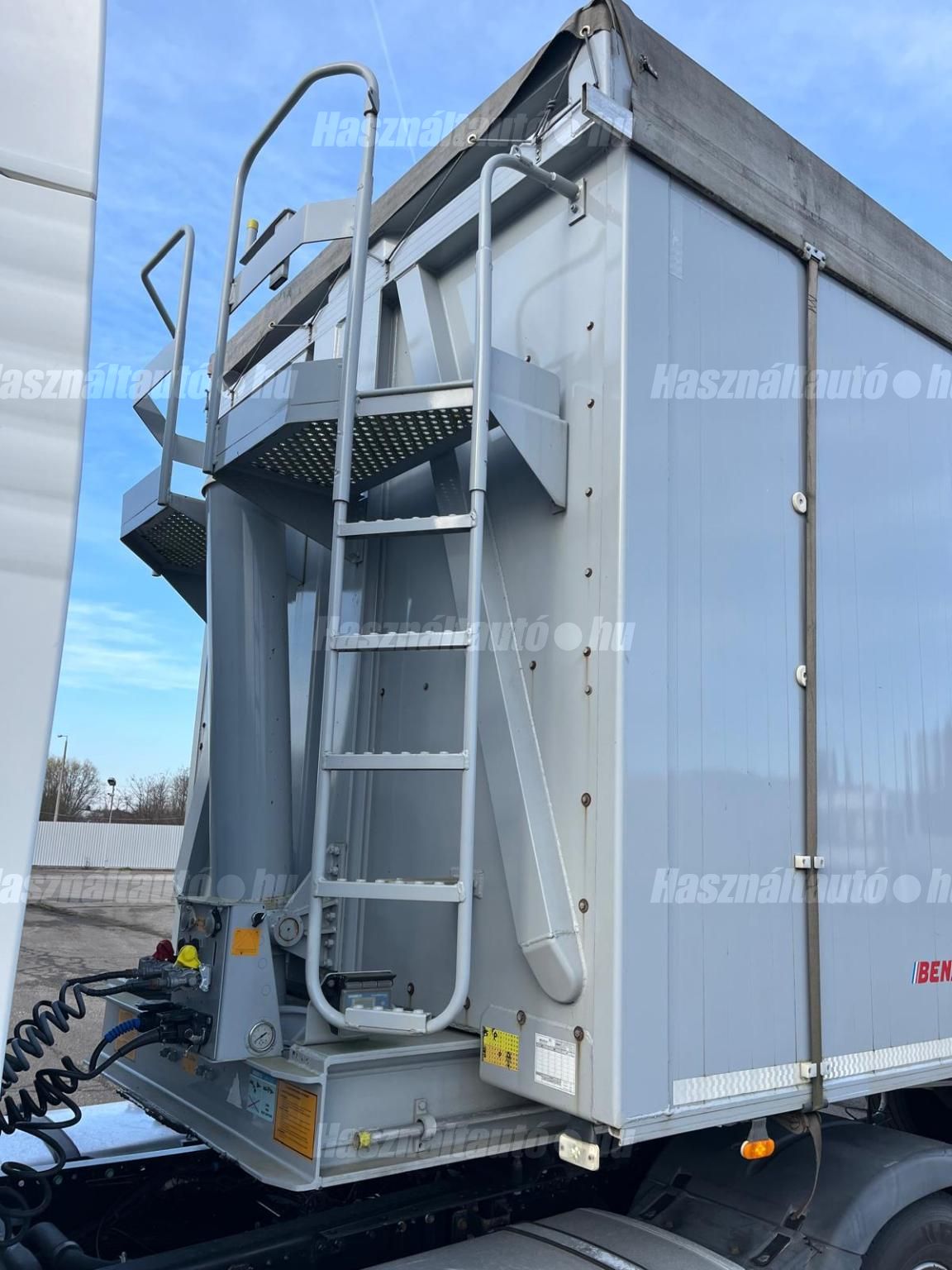 BENALU OPTILINER alu billencs pótkocsi, 60m3, tárcsafék, légrugó, BPW tengelyek. ABS, EBS, aláfutásgátló, ponyva, 2 db gabonaablak. Plató hossza: 9,5m, szélessége: 2,55m, magassága: 2,5m. Önsúly: 6,150kg. Igény szerint friss műszakival! Akár nettó áron (áfa mentesen) is megvásárolhatják az uniós adószámmal rendelkező cégek. A hirdetésben szereplő Forintos ár 387 huf/euróra vonatkozó ár! Pontos forintos ár az aktuális napi euró MNB árfolyamától függően kerül kialakításra!