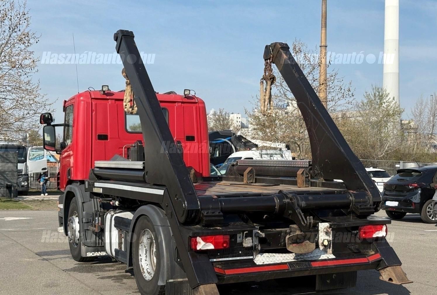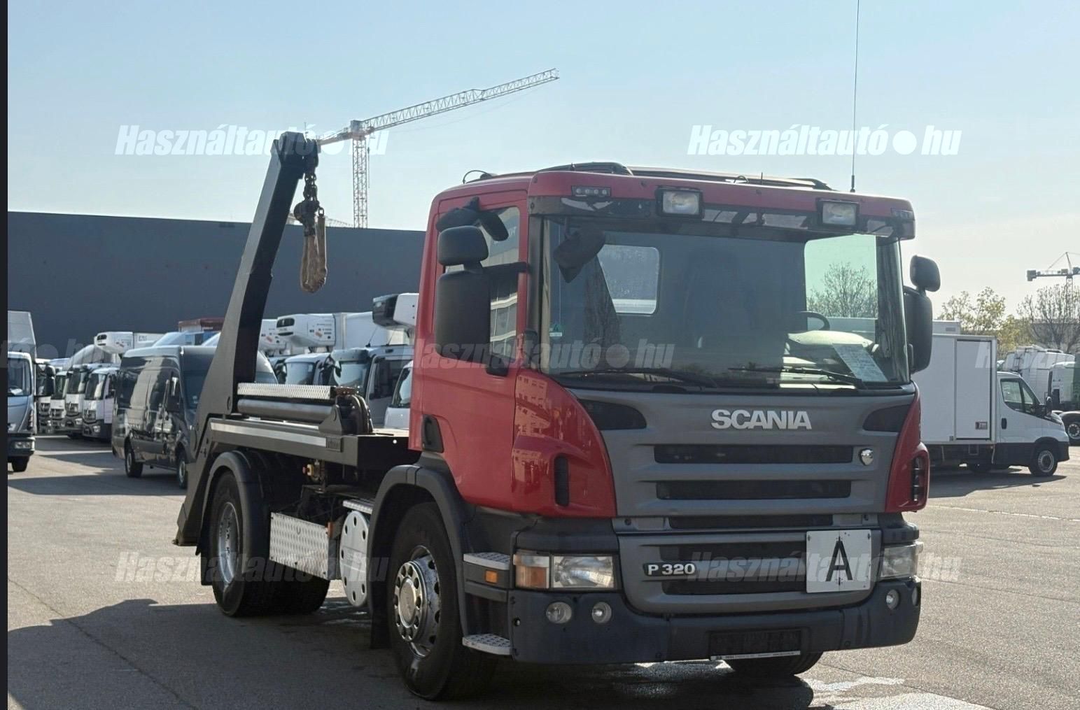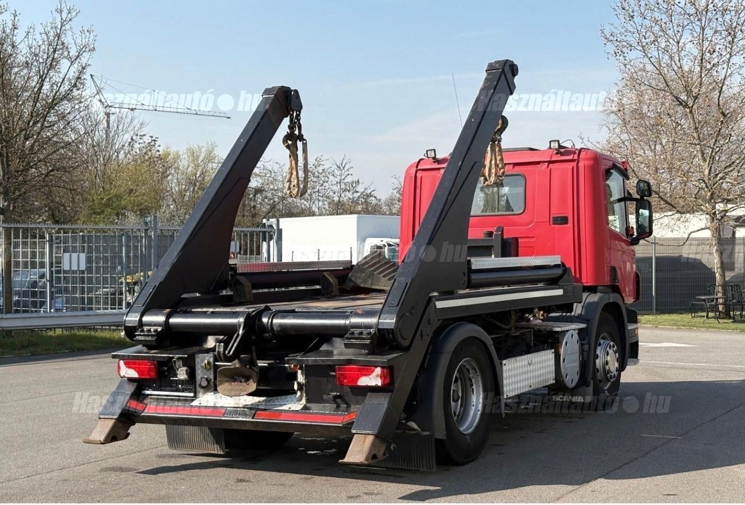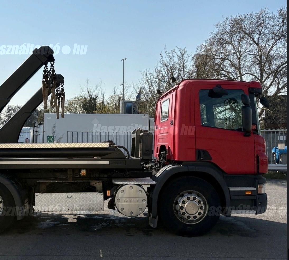 SCANIA P320 EU5 EEV, Hyvalift láncos konténeres felépítmény, 4x2, automata váltó, elől laprugó, hátul légrugó. Klíma, állítható kormány, központi zár, differenciálzár, tempomat, ABS, EBS, elektromos ablakok és tükrök, tükörfűtés, aláfutásgátló, napellenző, vonófej. Önsúly: 9,750kg, össztömeg: 18,000kg, hasznos: 8,250kg. Igény szerint friss műszakival! Akár nettó áron (áfa mentesen) is megvásárolhatják az uniós adószámmal rendelkező cégek. A hirdetésben szereplő Forintos ár 380 huf/euróra vonatkozó ár! Pontos forintos ár az aktuális napi euró MNB árfolyamától függően kerül kialakításra!