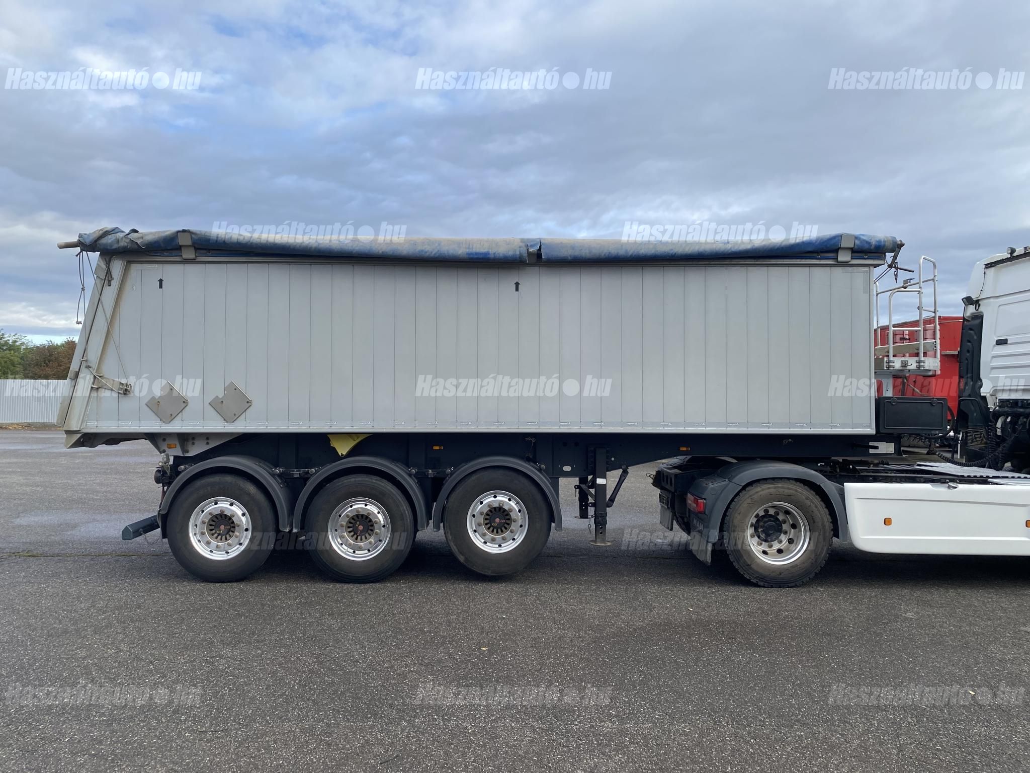 LANGENDORF SKA 28m3, tárcsafék, emelhető tengely, légrugó, SAF tengelyek, ABS, EBS, ponyva, aláfutásgátló. Tengelytávolság: 1,3m-1,3m. Plató hossza: 7,3m, szélessége: 2,4m, magassága: 1,7m. Gumiméret: 385/65 R22,5. Gumiállapot az első és utolsó tengelyen ca. 60%, középső tengelyen ca. 40%. Önsúly: 5,380kg, össztömeg: 39,000kg, hasznos: 33,620kg. Igény szerint friss műszakival! Uniós adószámmal rendelkező cégek igény szerint áfa mentesen ( nettó) is megvásárolhatják. A hirdetésben szereplő Forintos ár 380 huf/euróra vonatkozó ár! Pontos forintos ár az aktuális napi euró MNB árfolyamától függően kerül kialakításra!