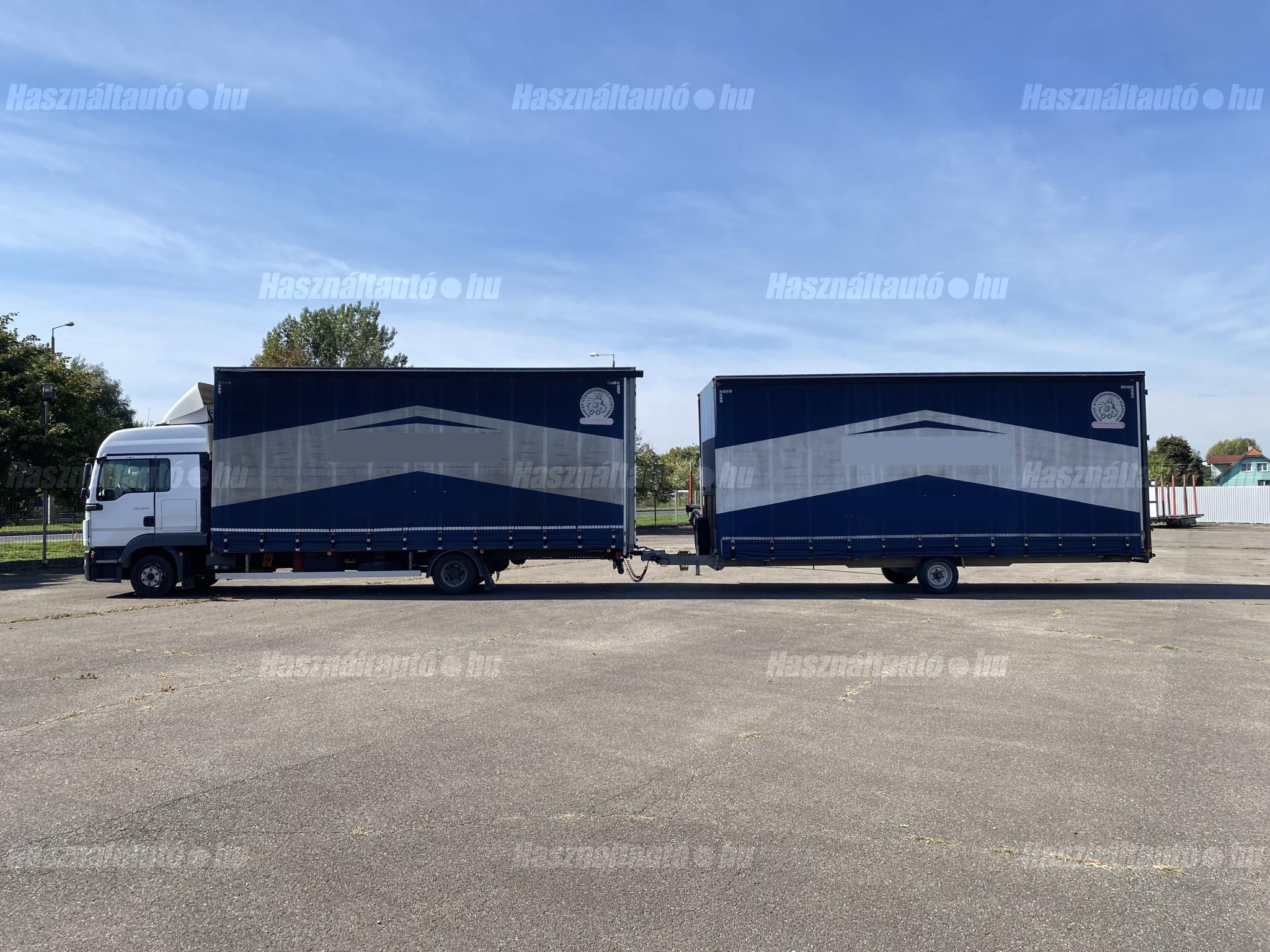 MAN TGL 8.220 függönyponyva, hátsó portálajtó, EU6, kézi váltó, tárcsafék, elől laprugó, hátul légrugó. Digitális klíma, állítható kormány, állófűtés, központi zár, differenciálzár, tempomat, ABS, EBS, ASR, ESC, távolságtartó- és sávtartó elektronika, elektromos ablakok és tükrök, tükörfűtés, aláfutásgátló, rádió, légterelő, pótkerék, 2 ágy, Ad-blue, hűtő, vonófej (vontatás: 11,280kg). Tengelytávolság: 5,2m. Plató hossza: 7,15m, szélessége: 2,55m magassága: 3m. Gumiméret elől: 225/75 R17,5, hátul: 215/75 R17,5. Gumiállapot elől ca. 60%, hátul ca. 85%. Önúly: 5,590kg, össztömeg: 8,600kg, hasznos: 3,200 kg. Pótkocsi: ALBATRAILER ponyvás pótkocsi, dobfék (ráfutófék), torziós rugózás, KNOTT tengely, függönyponyva, hátsó portálajtó, pótkerék. Plató hossza: 7,55m, szélessége: 2,55m magassága: 3m. Gumiméret: 205,65 R17,5. Gumiállapot ca. 40%. Önsúly: 1,500kg össztömeg: 3,500kg, hasznos: 2000kg. Pótkocsi vételár: 1.850.000+áfa. Igény szerint friss műszakival! A hirdetésben szereplő Forintos ár 387 huf/euróra vonatkozó ár! Pontos forintos ár az aktuális napi euró MNB árfolyamától függően kerül kialakításra!