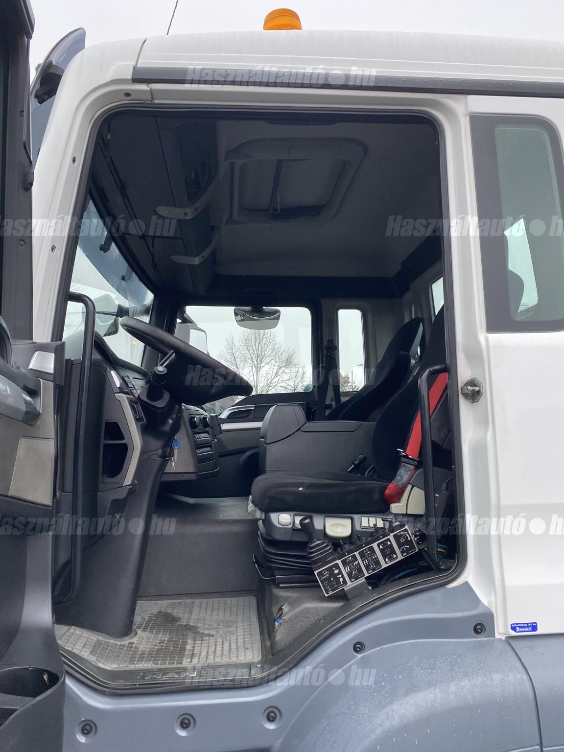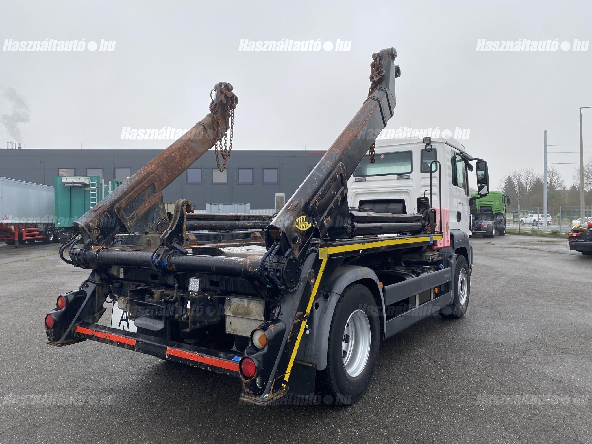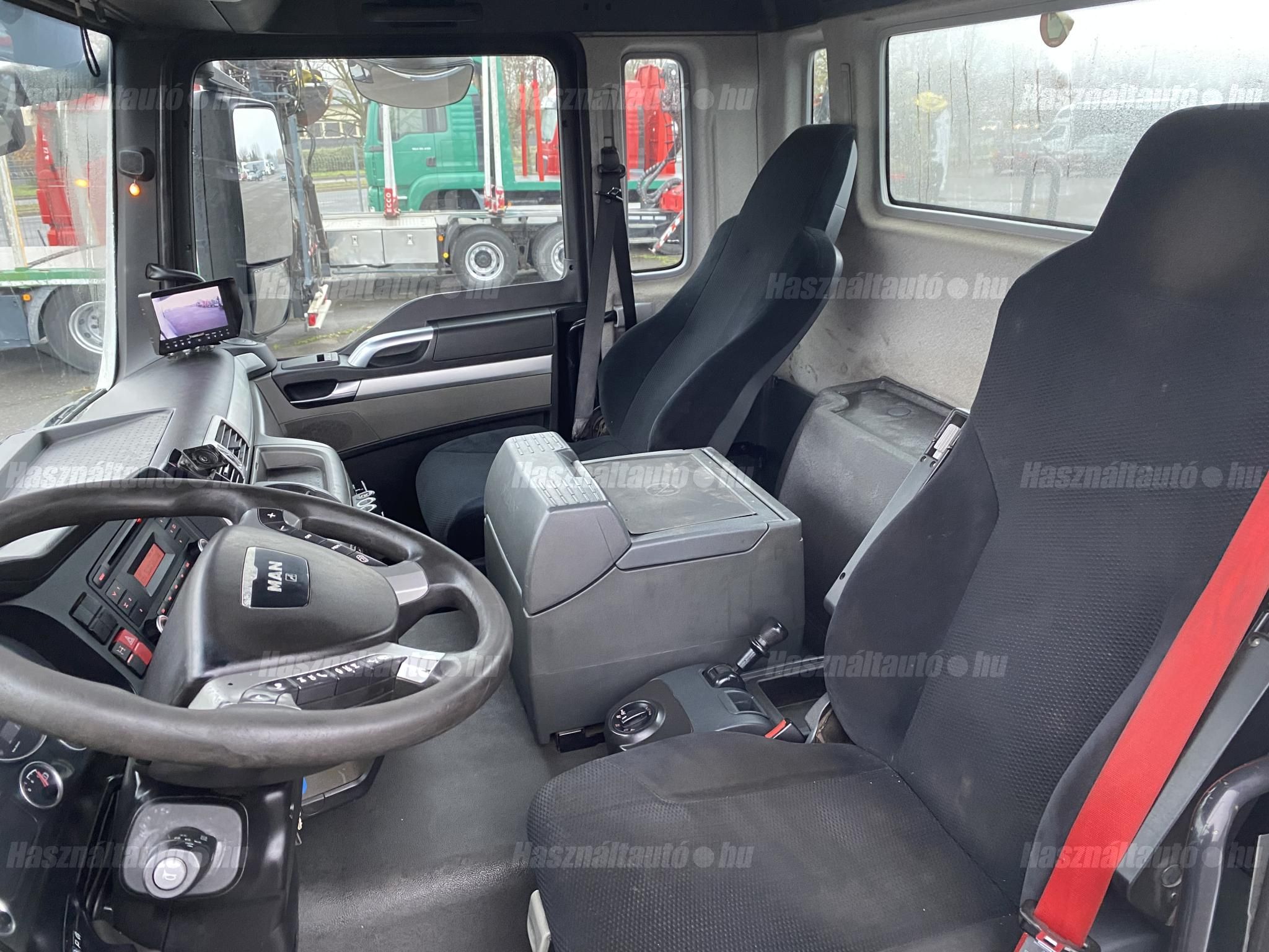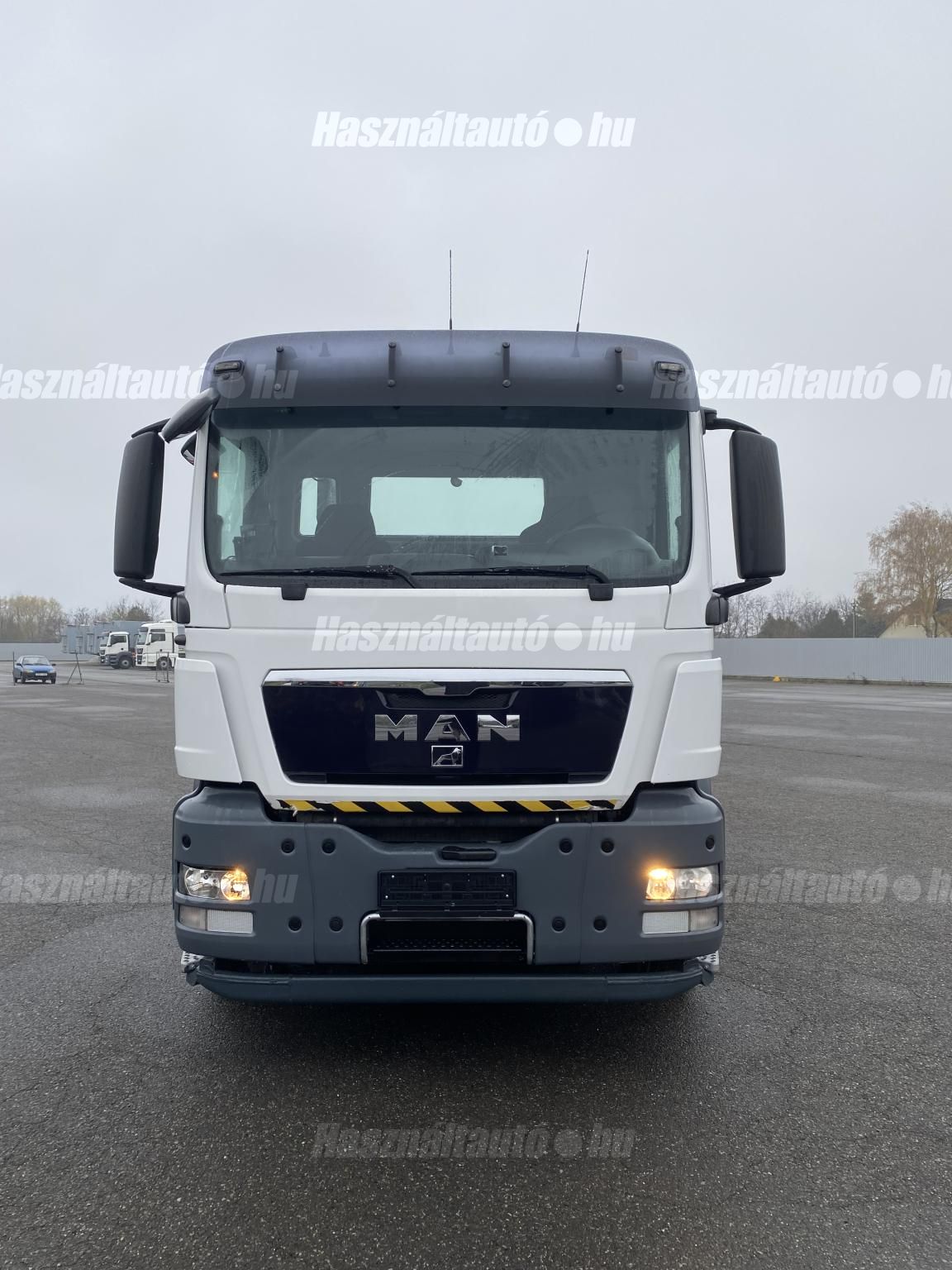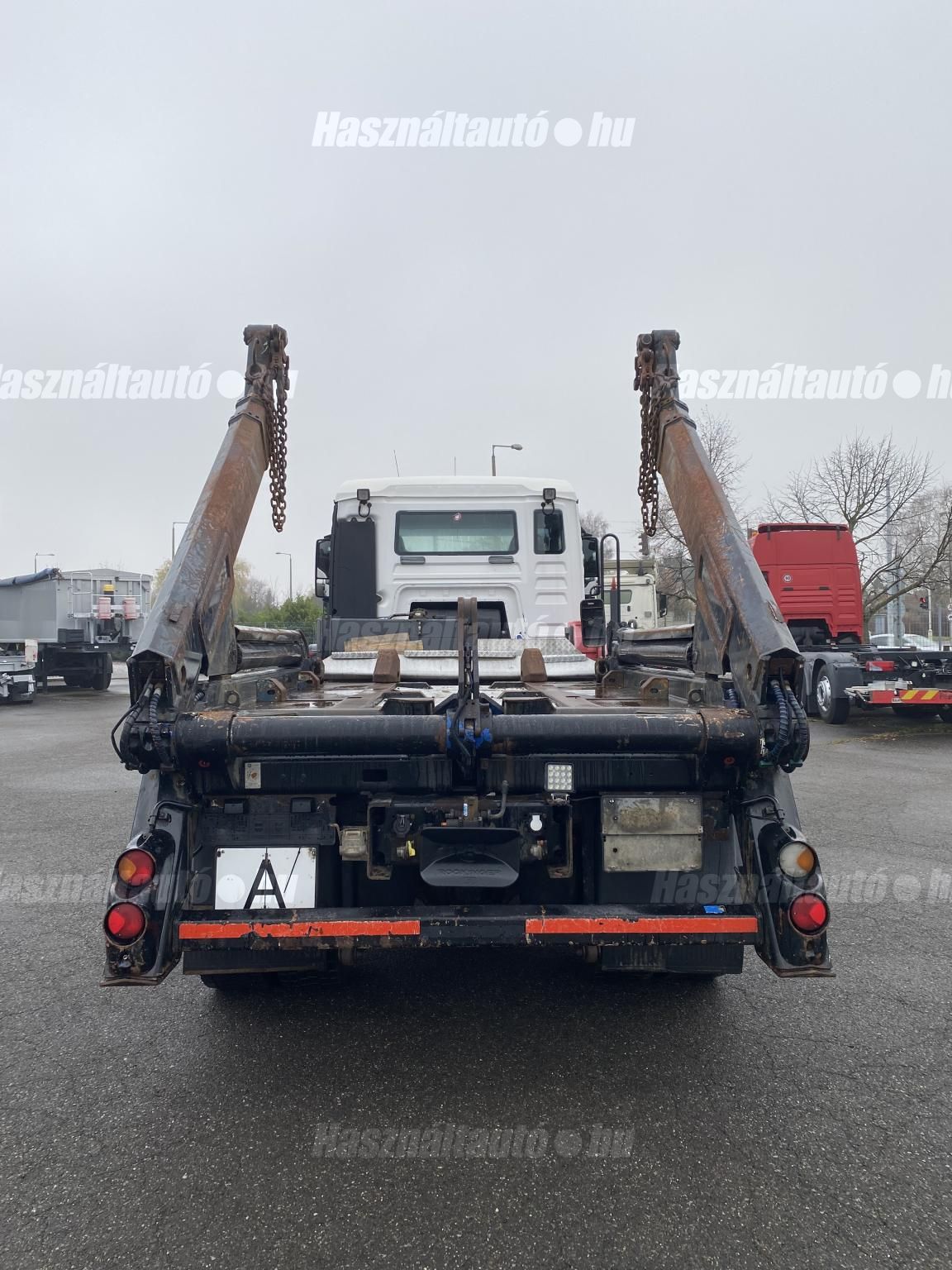 MAN TGS 18.400 EU5, Meiller AK12M1 kétkaros konténerszállító felépítmény (13 tonna teherbírás), ÚJ KUPLUNG! automata váltó, tárcsafék, elől laprugó, hátul légrugó. Automata klíma, állítható kormány, központi zár, differenciálzár, tempomat, ABS, EBS, elektromos ablakok és tükrök, tükörfűtés, aláfutásgátló, rádió, pótkerék tartó, Ad-blue, fűthető ülés, napellenző, forgólámpa, Rockinger vonófej (vontatás: 24,000kg). Tengelytávolság: 3,9m. Gumiméret elől: 385/65 R22,5, hátul: 315/80 R22,5. Gumiállapot elől ca. 40%, hátul ca. 60%. Önsúly: 10,000kg, össztömeg: 18,000kg, hasznos: 8,000kg. Igény szerint friss műszakival! Uniós adószámmal rendelkező cégek áfa mentesen( nettó) is megvásárolhatják. A hirdetésben szereplő Forintos ár 387 huf/euróra vonatkozó ár! Pontos forintos ár az aktuális napi euró MNB árfolyamától függően kerül kialakításra!