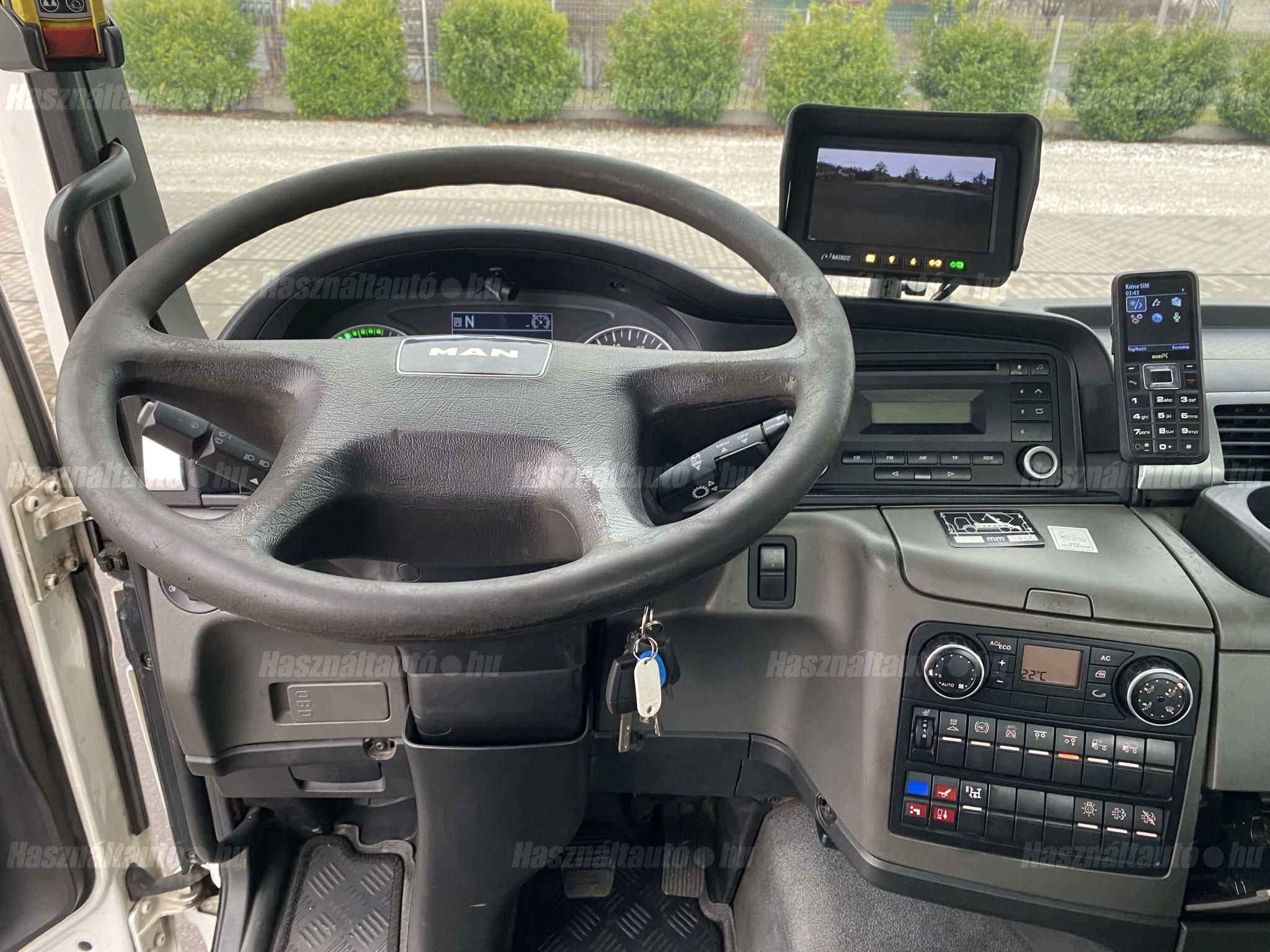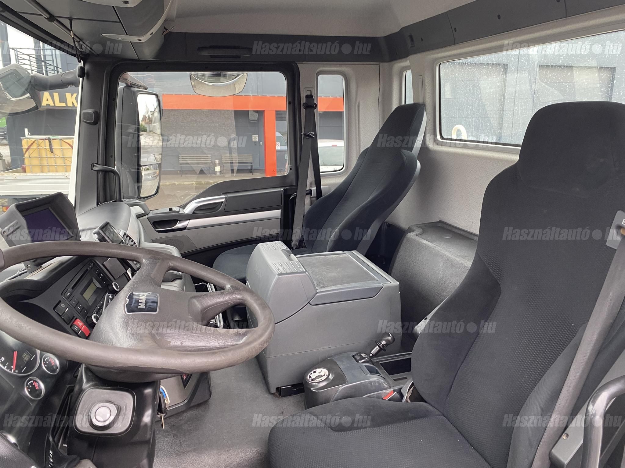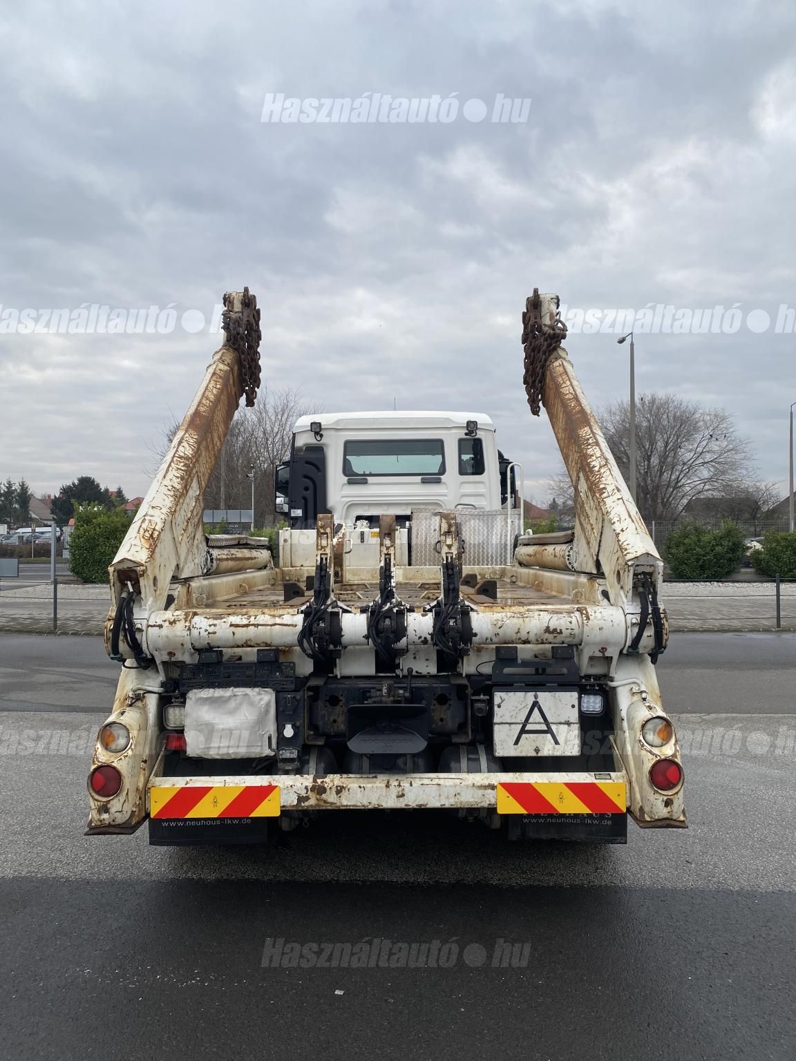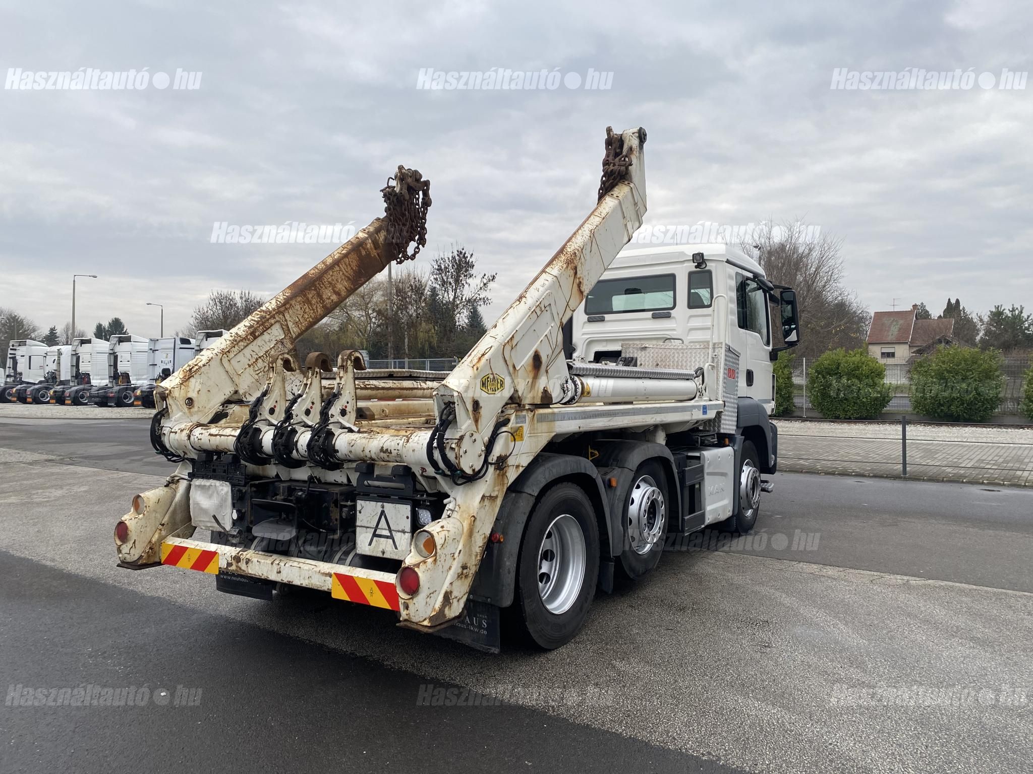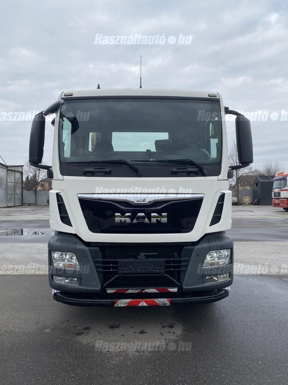 MAN TGS 26.400 6X2, EU6, Meiller AK16NT kétkaros láncos konténeres felépítmény (17 tonna teherbírás)+távirányító, emelhető tengely, automata váltó, tárcsafék, első tengely laprugós, hátsó tengelyek légrugósak. Automata klíma, állítható kormány, központi zár, differenciálzár, tempomat, ABS, EBS, ASR, ESP, elektromos ablakok és tükrök, tükörfűtés, aláfutásgátló, rádió, Ad-blue, fűthető ülés, hűtőbox, tolatókamera, Rockinger vonófej. Tengelytávolság A-B tengely: 2,6m, B-C tengely: 1,3m. Gumiméret: 315/70 R22,5. Gumiállapot ca. 70%. Önsúly: 12,524kg, össztömeg: 26,000kg, hasznos: 13,476kg. Igény szerint friss műszakival. Uniós adószámmal rendelkező cégek áfa mentesen( nettó) is megvásárolhatják. A hirdetésben szereplő Forintos ár 387 huf/euróra vonatkozó ár! Pontos forintos ár az aktuális napi euró MNB árfolyamától függően kerül kialakításra!