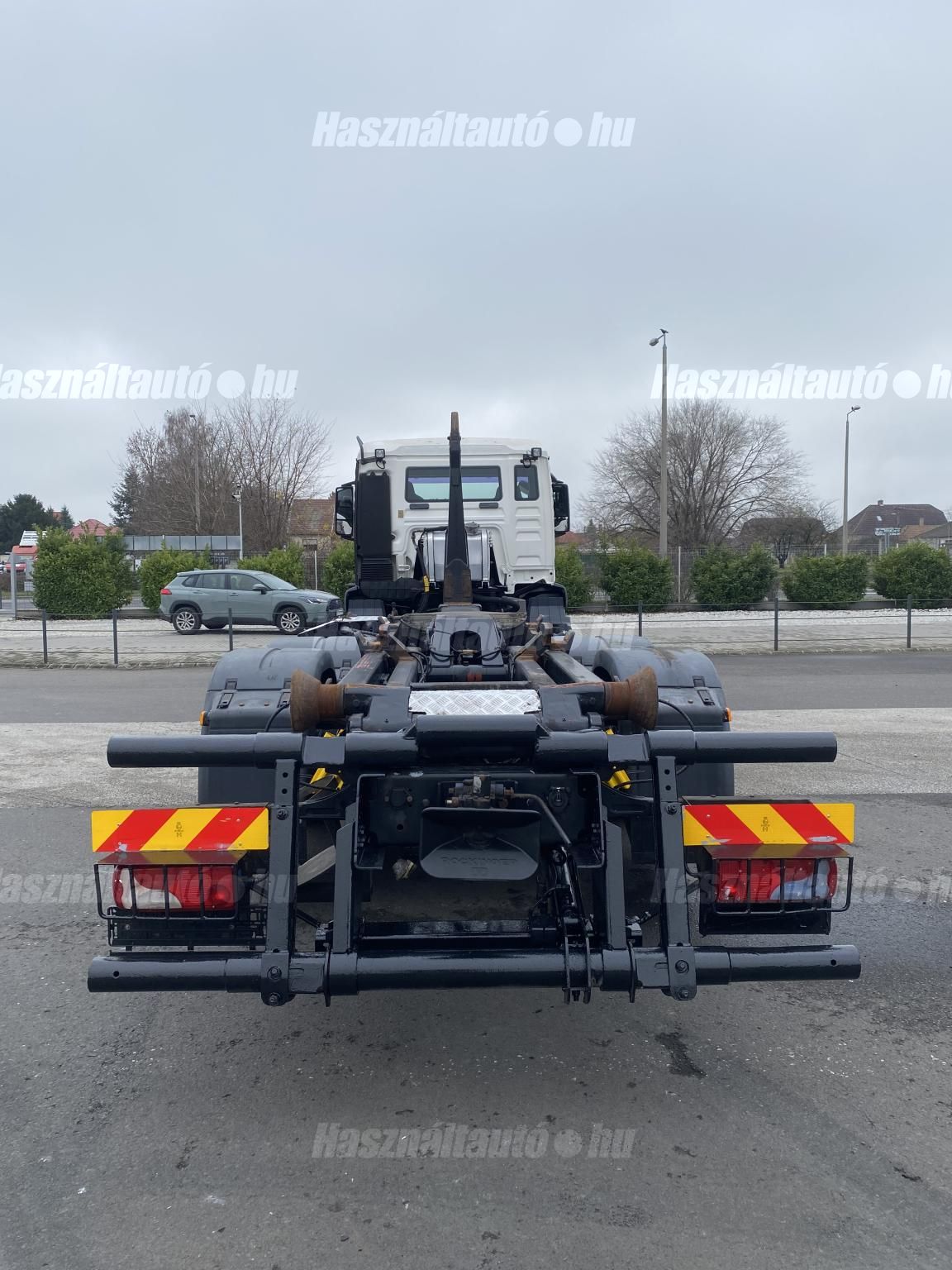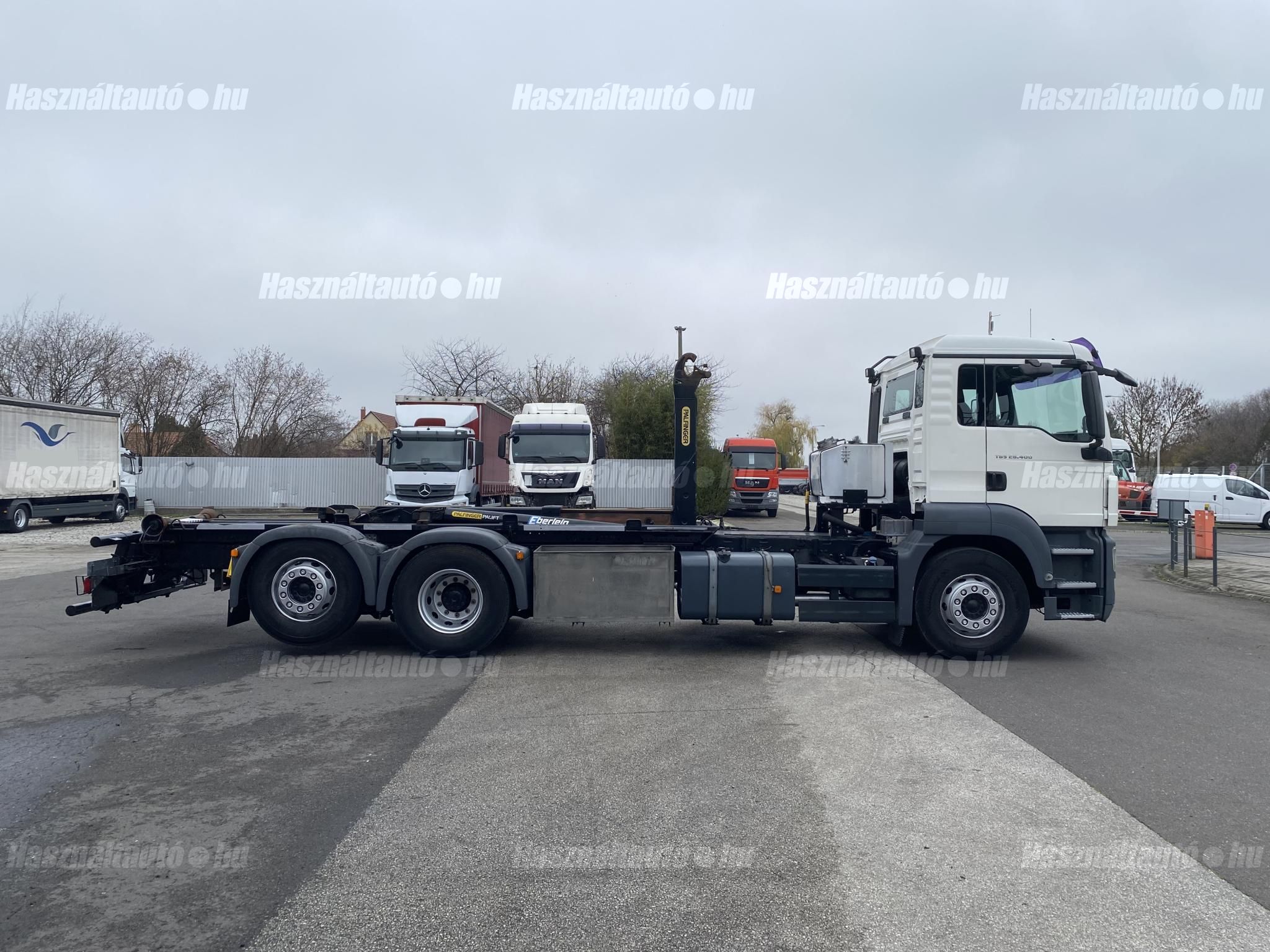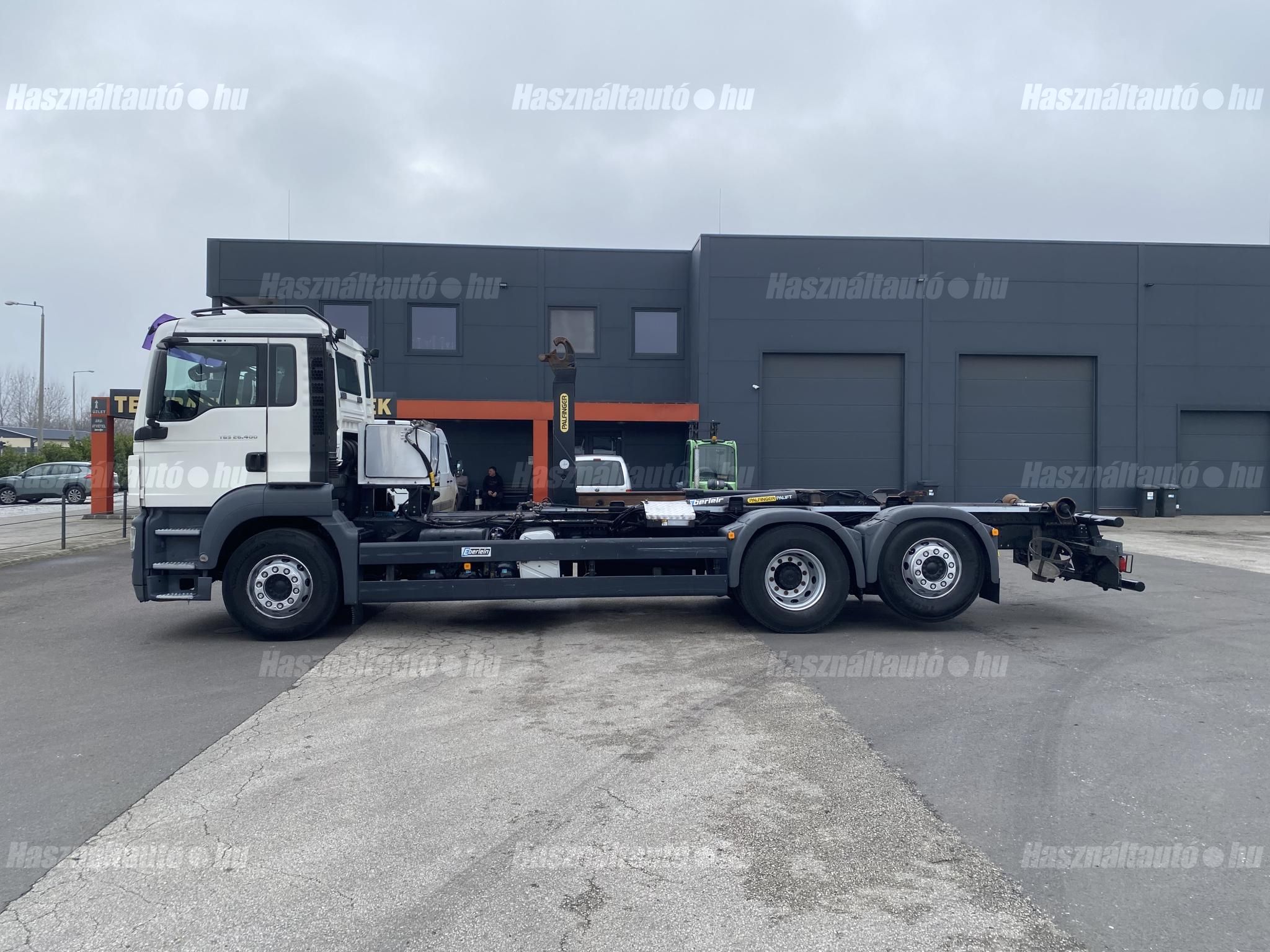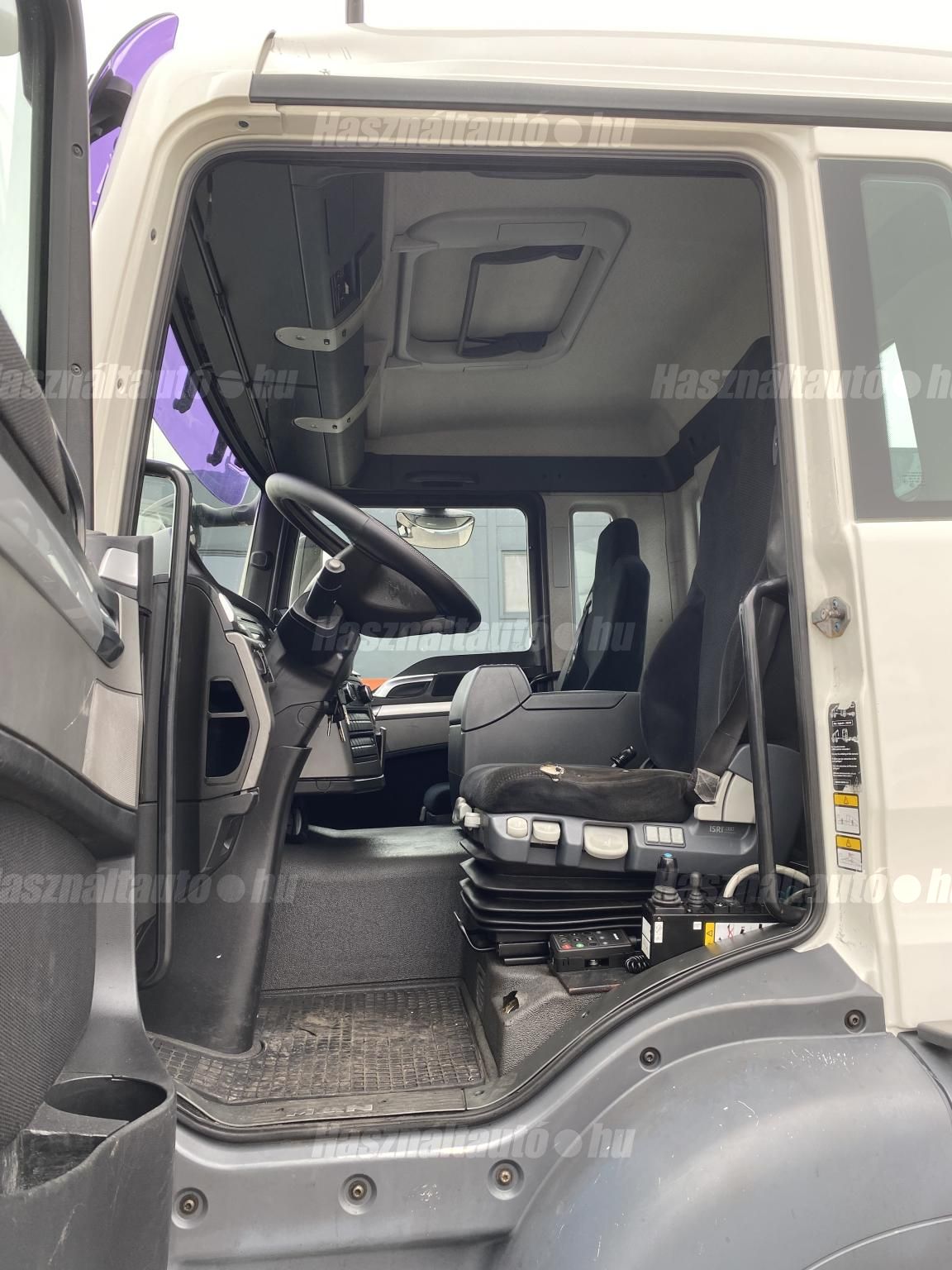 MAN TGS 26.400 6X2, EU5, Palfinger multilift felépítmény, darufogadás kiépítés, kormányzott emelhető tengely, automata váltó, tárcsafék, első tengelyen laprugó, hátsó tengelyek légrugósak. Automata klíma, állítható kormány, központi zár, differenciálzár, tempomat, ABS, EBS, ASR, elektromos ablakok és tükrök, tükörfűtés, aláfutásgátló, rádió, Ad-blue, hűtőbox, napellenző, Rockinger vonófej (vontatás: 25,577kg). Tengelytávolság A-B tengely: 4,8m, B-C tengely: 1,3m. Gumiméret: 315/80 R22,5. Gumiállapot az első tengelyen ca. 70%, hátsó tengelyeken ca. 50%. Önsúly: 13,660kg, össztömeg: 26,000kg, hasznos: 12,340kg. Igény szerint friss műszakival. Uniós adószámmal rendelkező cégek áfa mentesen( nettó) is megvásárolhatják. A hirdetésben szereplő Forintos ár 380 huf/euróra vonatkozó ár! Pontos forintos ár az aktuális napi euró MNB árfolyamától függően kerül kialakításra!