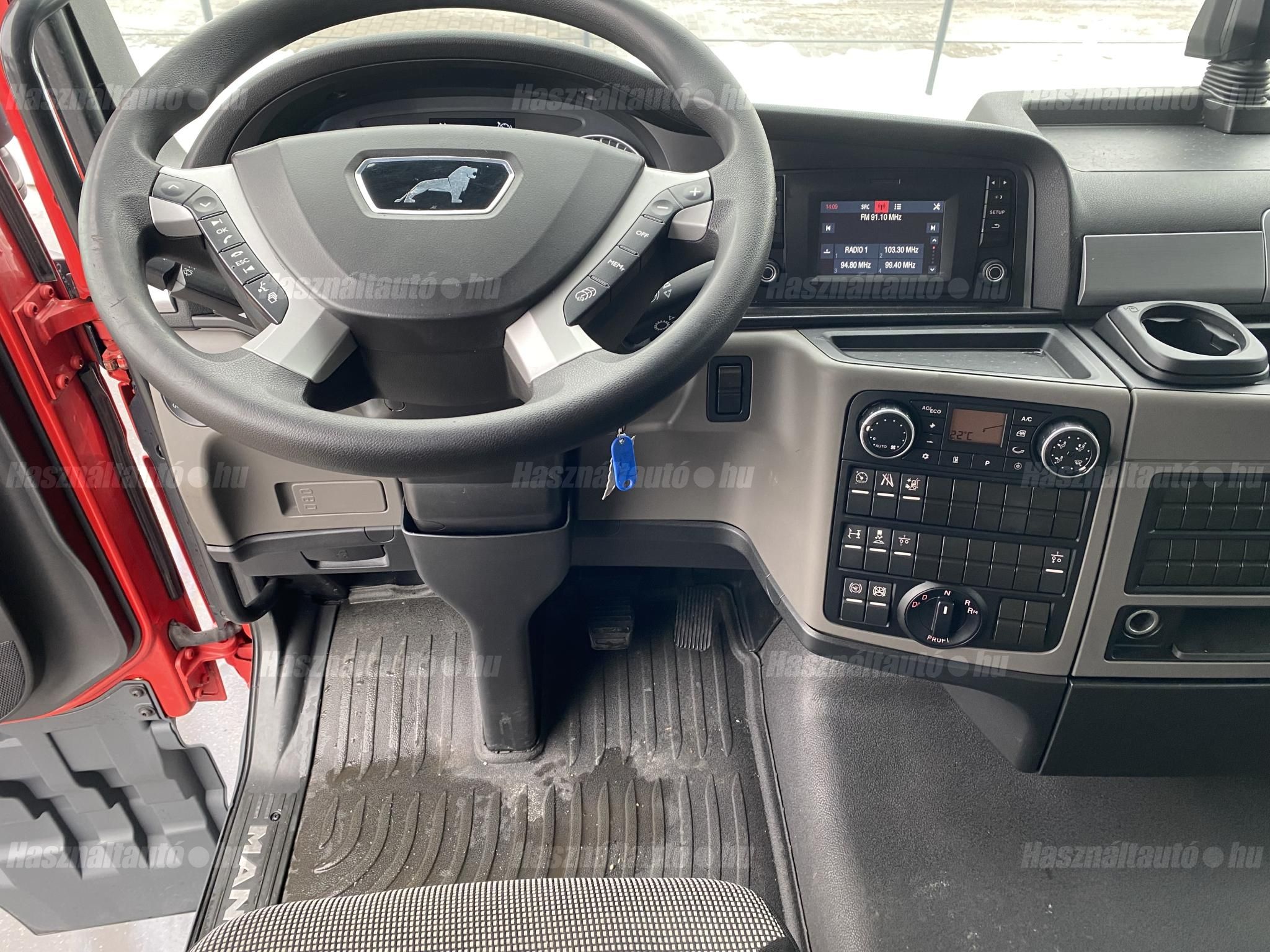 MAN TGX 18.470 XLX, EU6D, retarder, állóklíma, automata váltó, tárcsafék, elől laprugó, hátul légrugó. Automata klíma, állítható kormány, állófűtés, központi zár, differenciálzár, tempomat, ABS, EBS, elektromos ablakok és tükrök, tükörfűtés, rádió, full légterelő, 2 ágy, Ad-blue, hűtő, sávtartó és távolságtartó elektronika. Tengelytávolság: 3,6m. Gumiméret elől: 385/55 R22,5, hátul: 315/70 R22,5. Gumiállapot elől ca. 60%, hátul ca. 35%. Önsúly: 8,078kg. Igény szerint friss műszakival! Uniós adószámmal rendelkező cégek igény szerint áfa mentesen ( nettó) is megvásárolhatják. A hirdetésben szereplő Forintos ár 380 huf/euróra vonatkozó ár! Pontos forintos ár az aktuális napi euró MNB árfolyamától függően kerül kialakításra!