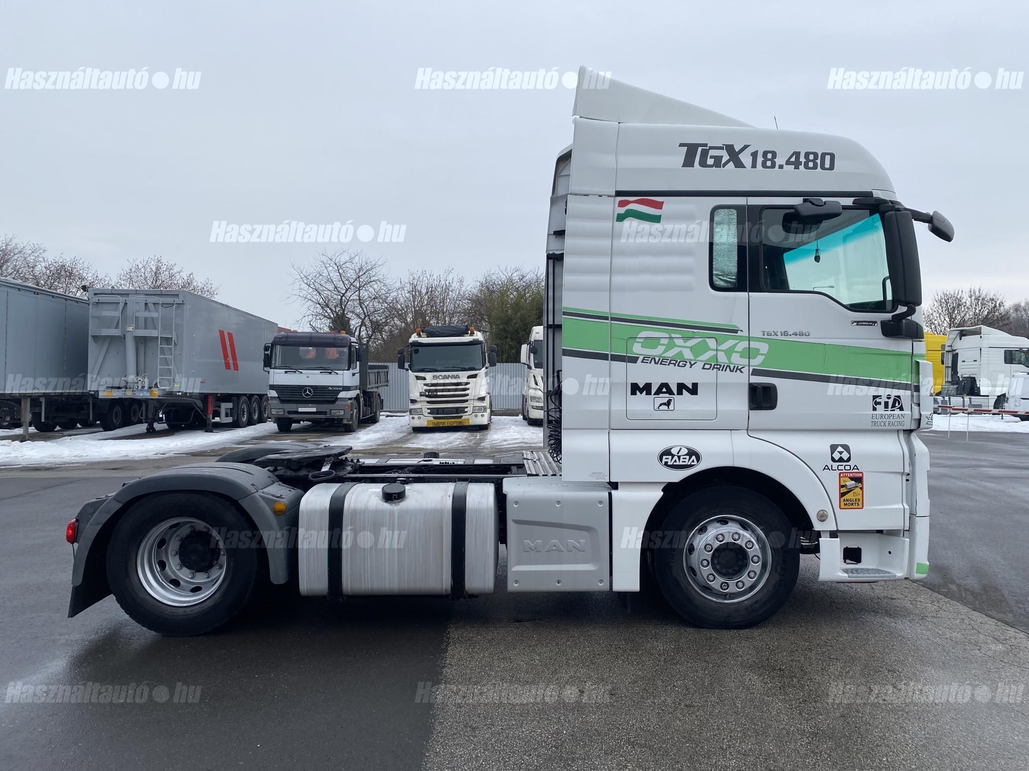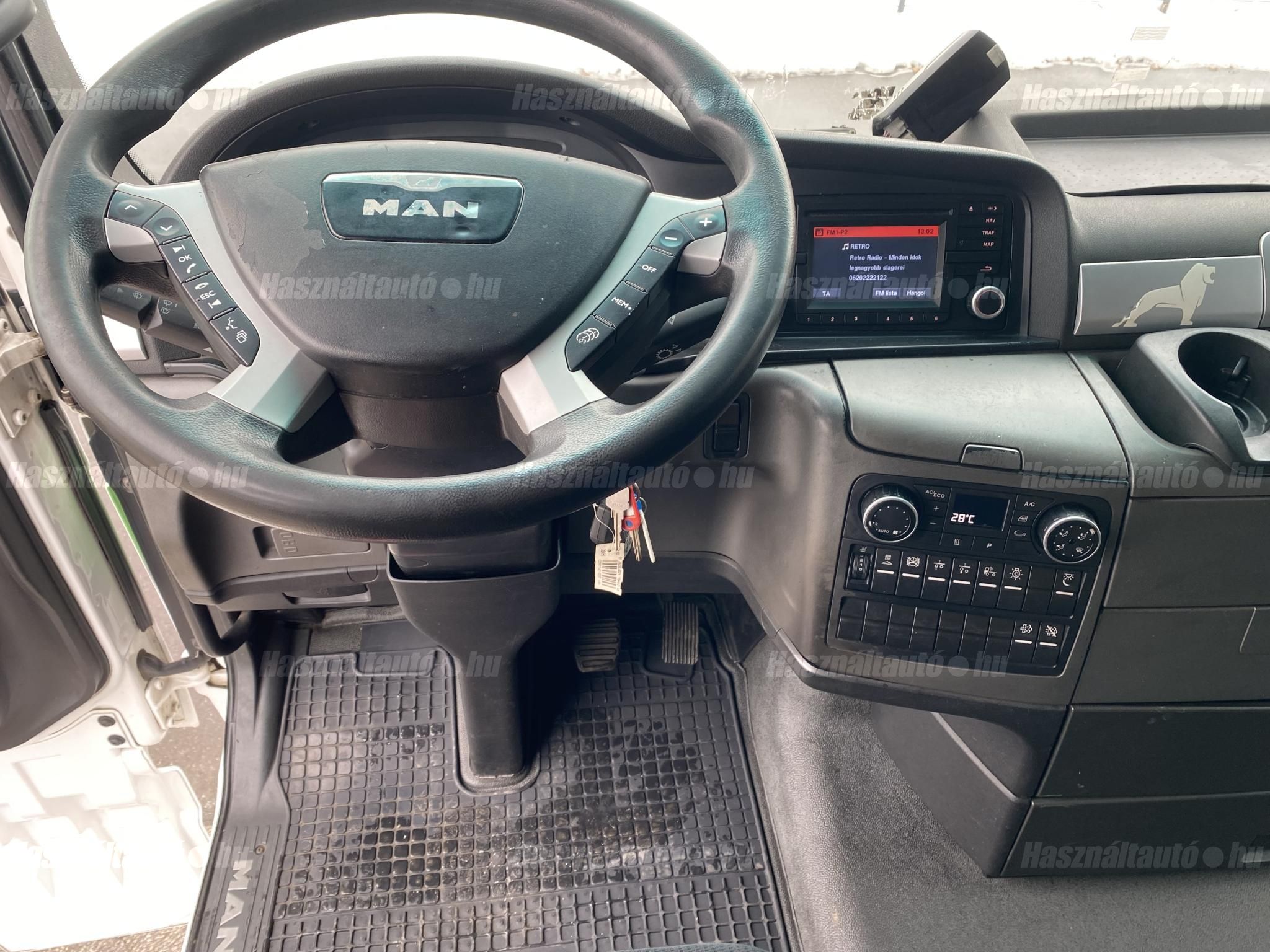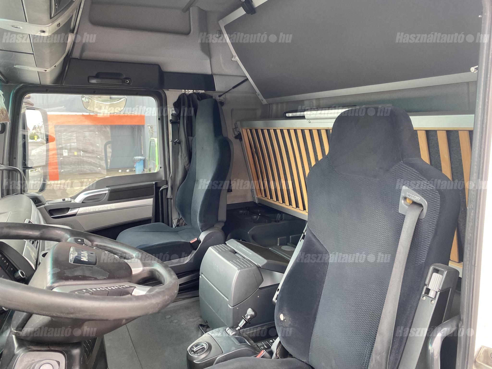 MAN TGX 18.480 EU6, retarder, automata váltó, tárcsafék, elől laprugó, hátul légrugó. Automata klíma, állítható kormány, állófűtés, ülésfűtés, központi zár, differenciálzár, tempomat, ABS, EBS, ASR, ESP, elektromos ablakok és tükrök, tükörfűtés, rádió, navigáció, full spoiler, 2 ágy, Ad-blue, hűtő. Tengelytávolság: 3,6m. Gumiméret: 315/70 R22,5, gumiállapot ca. 35%. Önsúly: 7,921kg. Igény szerint friss műszakival! A hirdetésben szereplő Forintos ár 380 huf/euróra vonatkozó ár! Pontos forintos ár az aktuális napi euró MNB árfolyamától függően kerül kialakításra! Megbízható állapot, végig nemzetköziben dolgozott . Rendszeresen szervizelt , jó motor, váltó , nem kopog nincs hibakód!