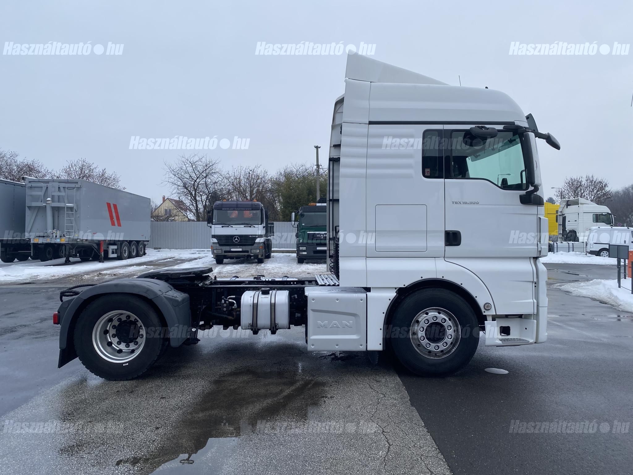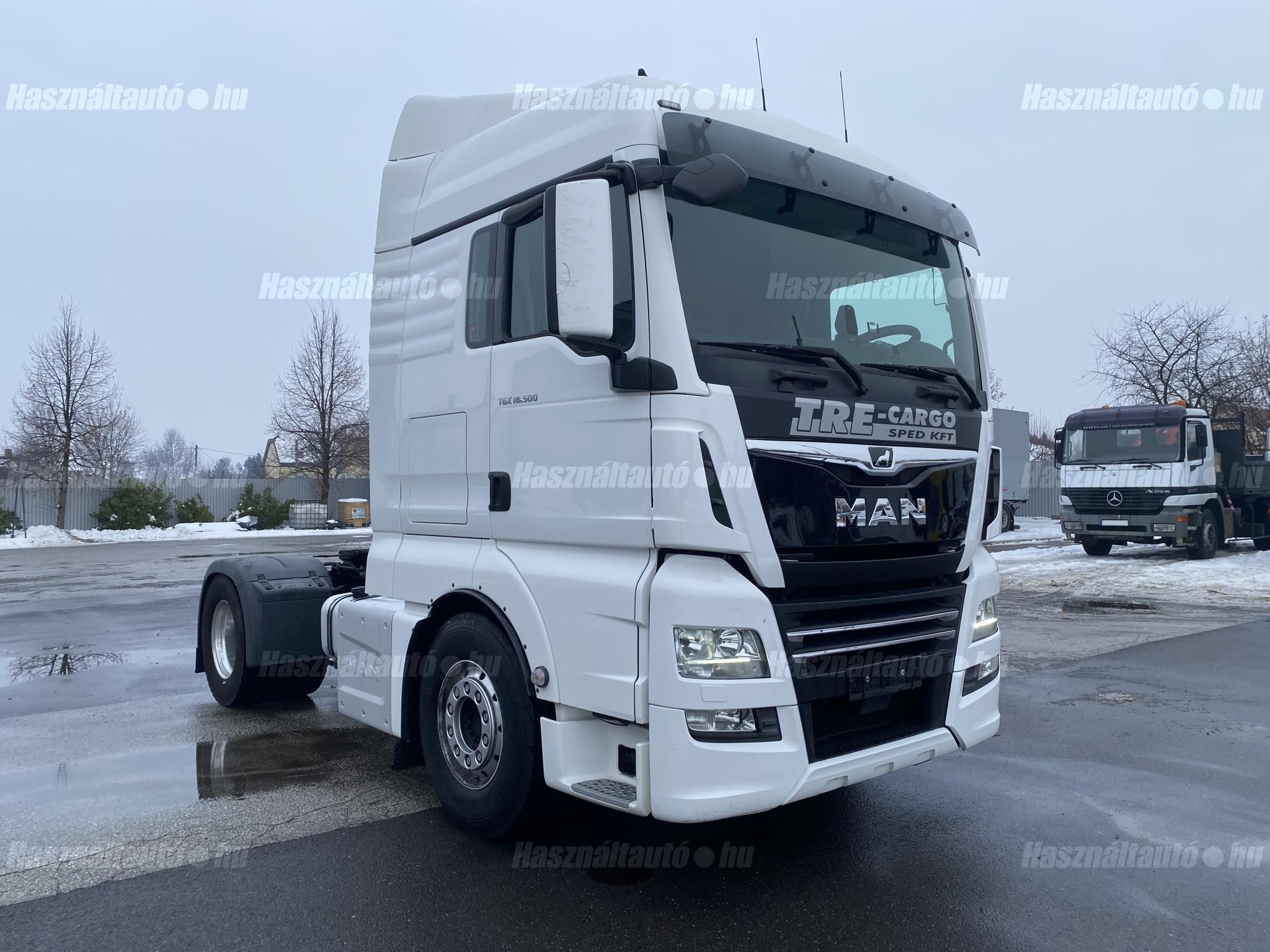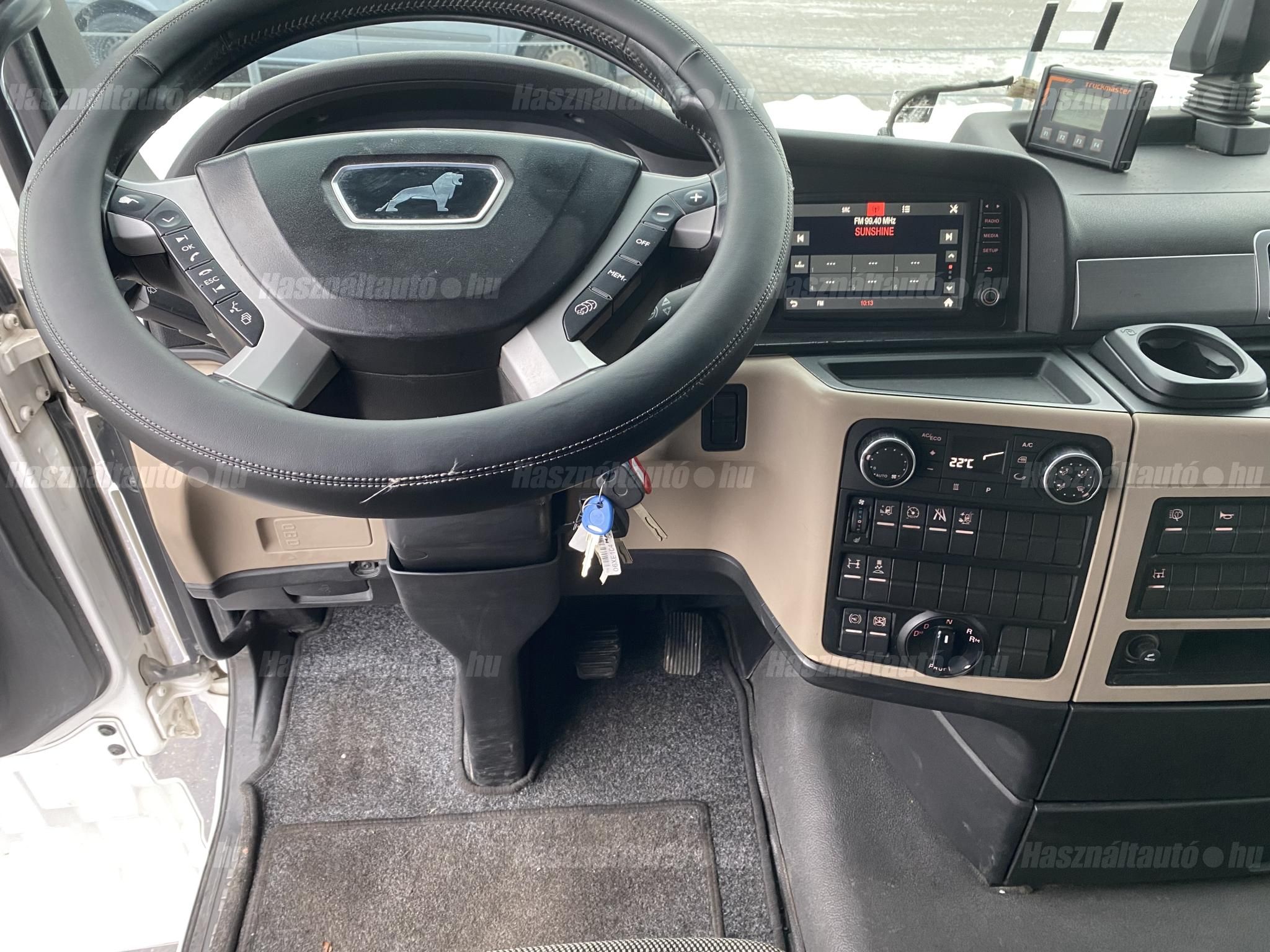 MAN TGX 18.500 XLX, EU6, retarder, igény szerint hidraulika rendszer(+900.000 Fr), automata váltó, tárcsafék, elől laprugó, hátul légrugó. Automata klíma, állítható kormány, állófűtés, központi zár, differenciálzár, tempomat, navigáció, ABS, EBS, elektromos ablakok és tükrök, tükörfűtés, rádió, full spoiler, 1 ágy, Ad-blue, ülésfűtés, hűtő, napellenző, sávtartó-, távolságtartó elektronika. Tengelytávolság: 3,6m. Gumiméret elől: 385/65 R22,5, hátul: 315/70 R22,5. Gumiállapot ca. 50%. Önsúly: 7,774kg. Igény szerint friss műszakival! Uniós adószámmal rendelkező cégek igény szerint áfa mentesen ( nettó) is megvásárolhatják. A hirdetésben szereplő Forintos ár 380 huf/euróra vonatkozó ár! Pontos forintos ár az aktuális napi euró MNB árfolyamától függően kerül kialakításra! (114314)