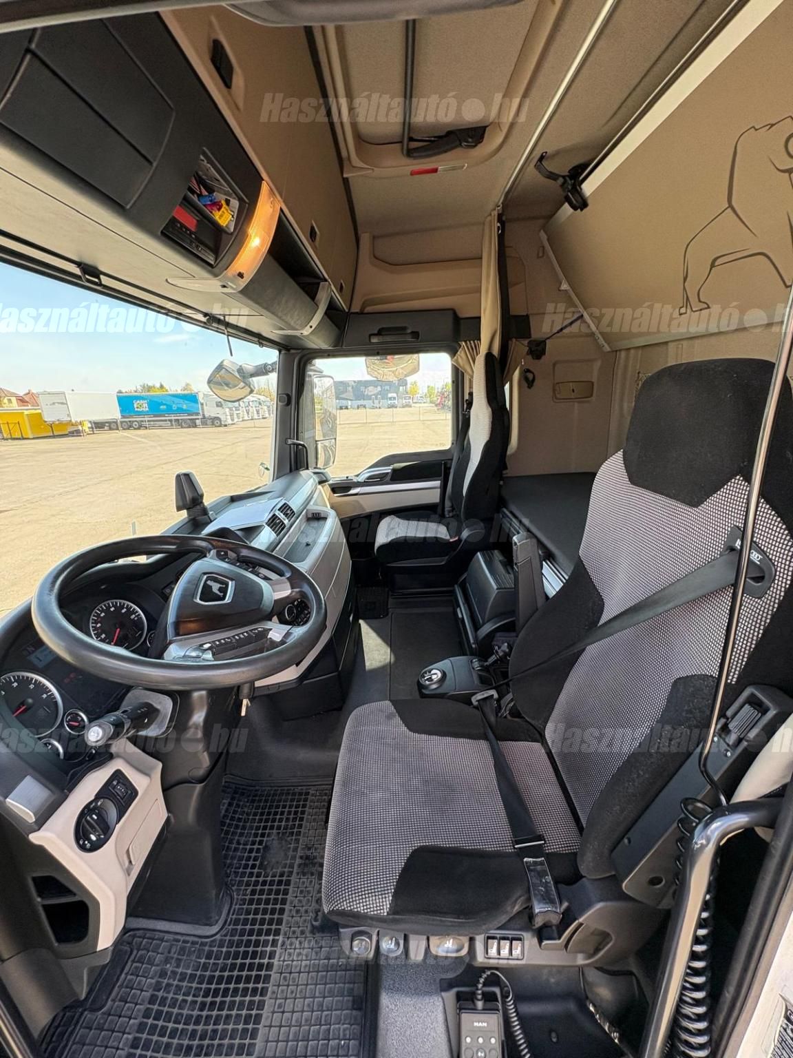 MAN TGX 18.500 XLX, EU6, retarder, automata váltó, tárcsafék, elől laprugó, hátul légrugó. Automata klíma, állítható kormány, állófűtés, központi zár, differenciálzár, tempomat, navigáció, ABS, EBS, ASR, ESP, elektromos ablakok és tükrök, tükörfűtés, rádió, full spoiler, 2 ágy, Ad-blue, ülésfűtés, hűtő, sávtartó- és távolságtartó elektronika. Tengelytávolság: 3,6m. Gumiméret: 315/70 R22,5. Önsúly: 7,700kg. Igény szerint friss műszakival! Uniós adószámmal rendelkező cégek igény szerint áfa mentesen ( nettó) is megvásárolhatják. A hirdetésben szereplő Forintos ár 380 huf/euróra vonatkozó ár! Pontos forintos ár az aktuális napi euró MNB árfolyamától függően kerül kialakításra! (68246)