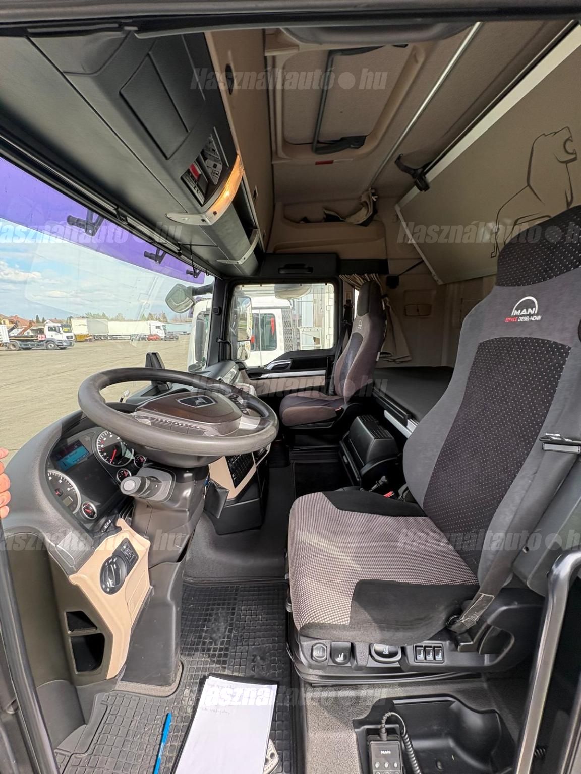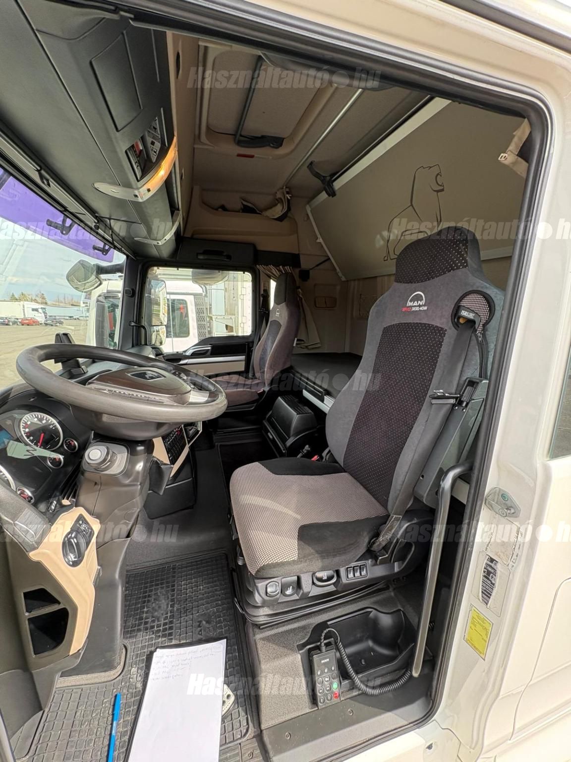 MAN TGX 18.500 XLX, EU6, retarder, automata váltó, tárcsafék, elől laprugó, hátul légrugó. Automata klíma, állítható kormány, állófűtés, központi zár, differenciálzár, tempomat, navigáció, ABS, EBS, ASR, ESP, elektromos ablakok és tükrök, tükörfűtés, rádió, full spoiler, 2 ágy, Ad-blue, ülésfűtés, hűtő, sávtartó- és távolságtartó elektronika. Tengelytávolság: 3,6m. Gumiméret: 315/70 R22,5. Önsúly: 7,700kg. Igény szerint friss műszakival! Uniós adószámmal rendelkező cégek igény szerint áfa mentesen ( nettó) is megvásárolhatják. A hirdetésben szereplő Forintos ár 380 huf/euróra vonatkozó ár! Pontos forintos ár az aktuális napi euró MNB árfolyamától függően kerül kialakításra! (66541)