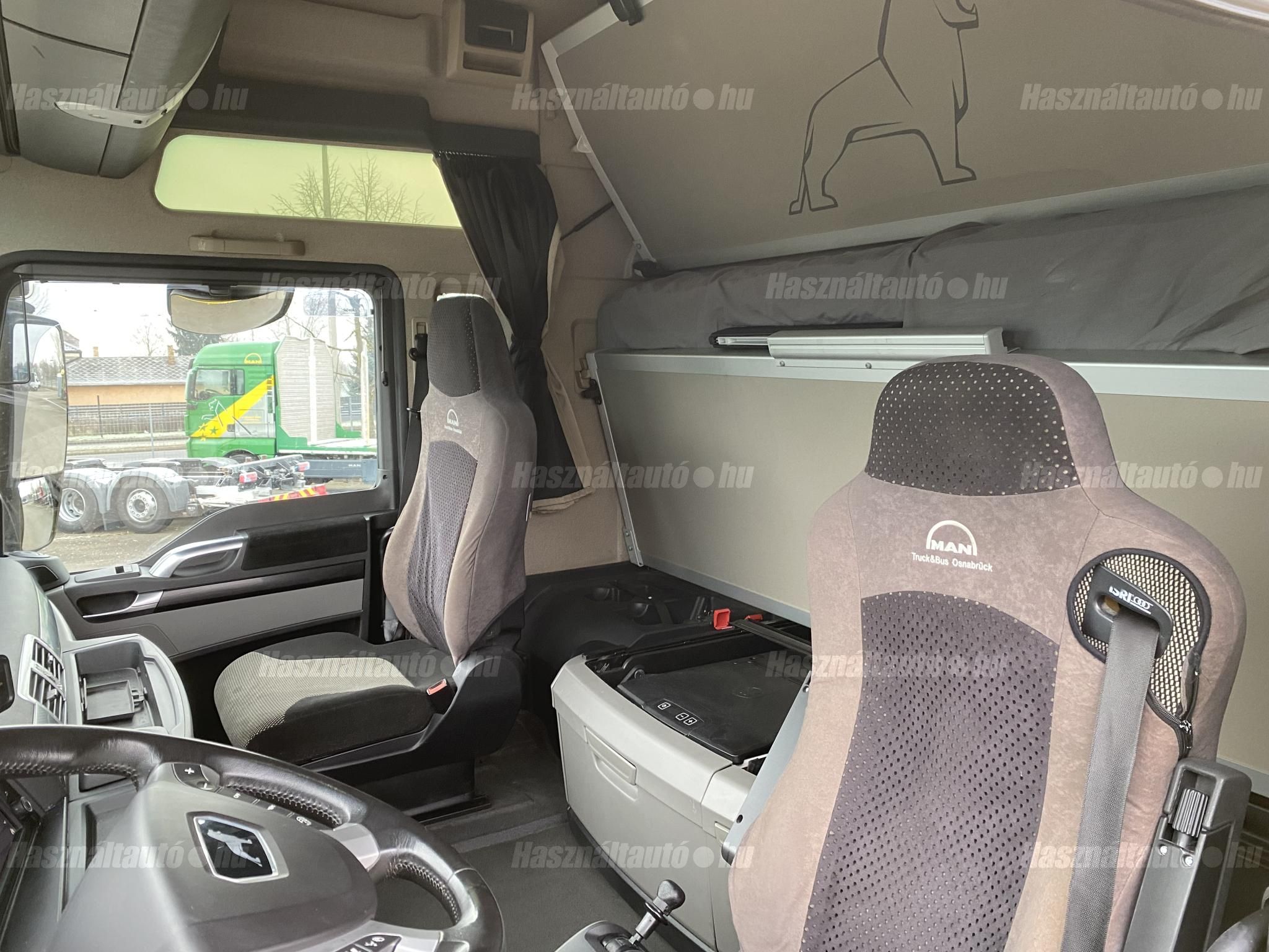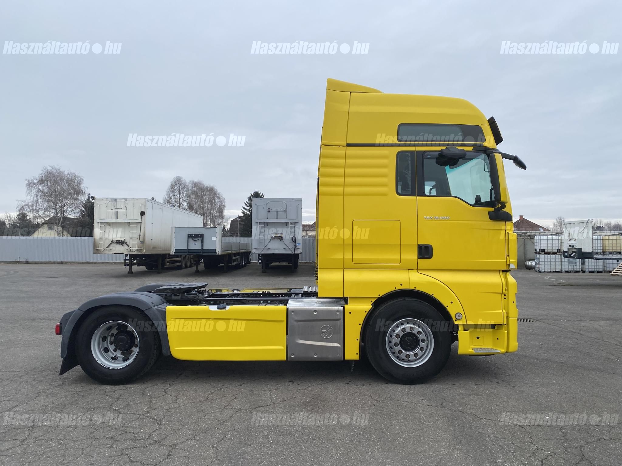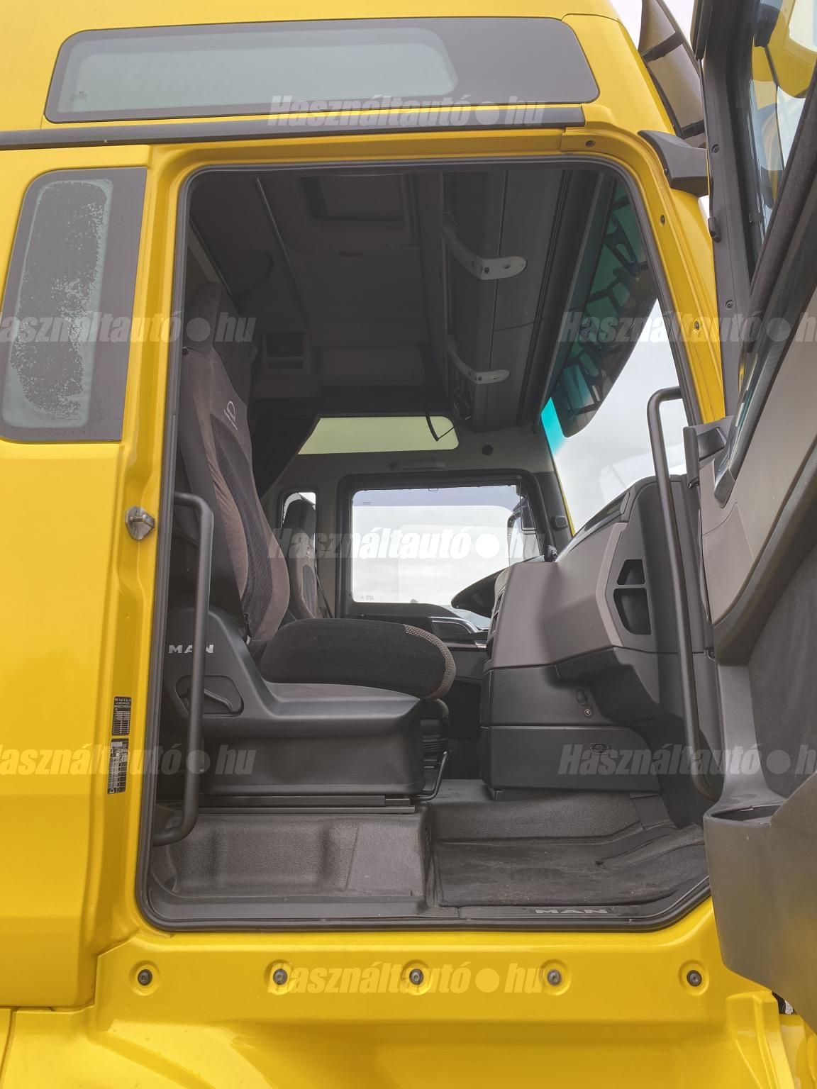 MAN TGX 18.500 XXL, EU6, retarder, automata váltó, tárcsafék, full spoiler, elől laprugó, hátul légrugó. Automata klíma, állítható kormány, állófűtés, ülésfűtés, központi zár, differenciálzár, tempomat, navigáció, ABS, EBS, elektromos ablakok és tükrök, tükörfűtés, aláfutásgátló, rádió, 2 ágy, 2 tank, Ad-blue, hűtő, napellenző, fűthető szélvédő, sávtartó- és távolságtartó elektronika. Tengelytávolság: 3,6m. Gumiméret elől: 385/65 R22,5, hátul: 315/70 R22,5. Gumiállapot az első tengelyen ca. 80%, hátsó tengelyen ca. 50%. Önsúly: 7,965kg. Igény szerint friss műszakival! Uniós adószámmal rendelkező cégek igény szerint áfa mentesen ( nettó) is megvásárolhatják. A hirdetésben szereplő Forintos ár 387 huf/euróra vonatkozó ár! Pontos forintos ár az aktuális napi euró MNB árfolyamától függően kerül kialakításra!