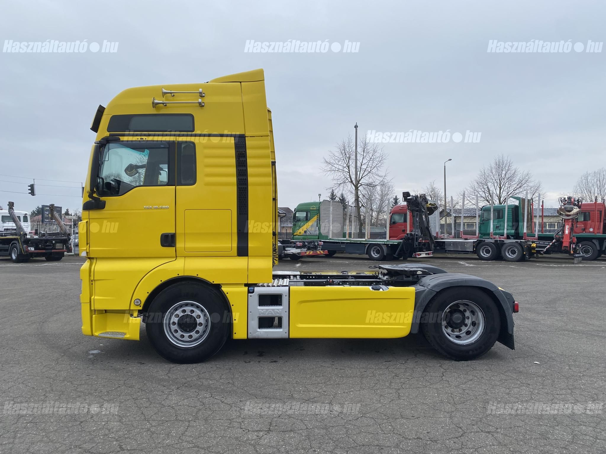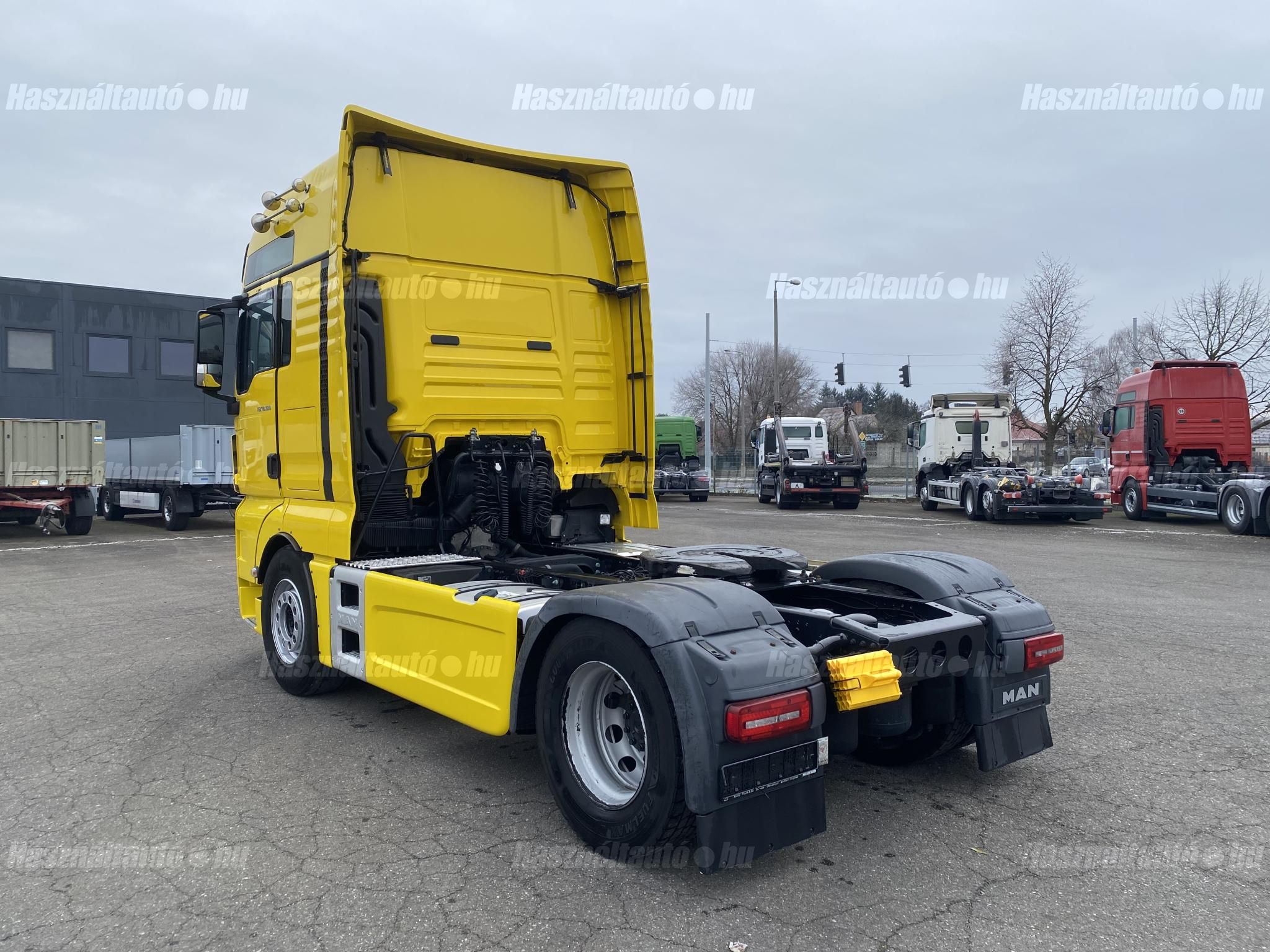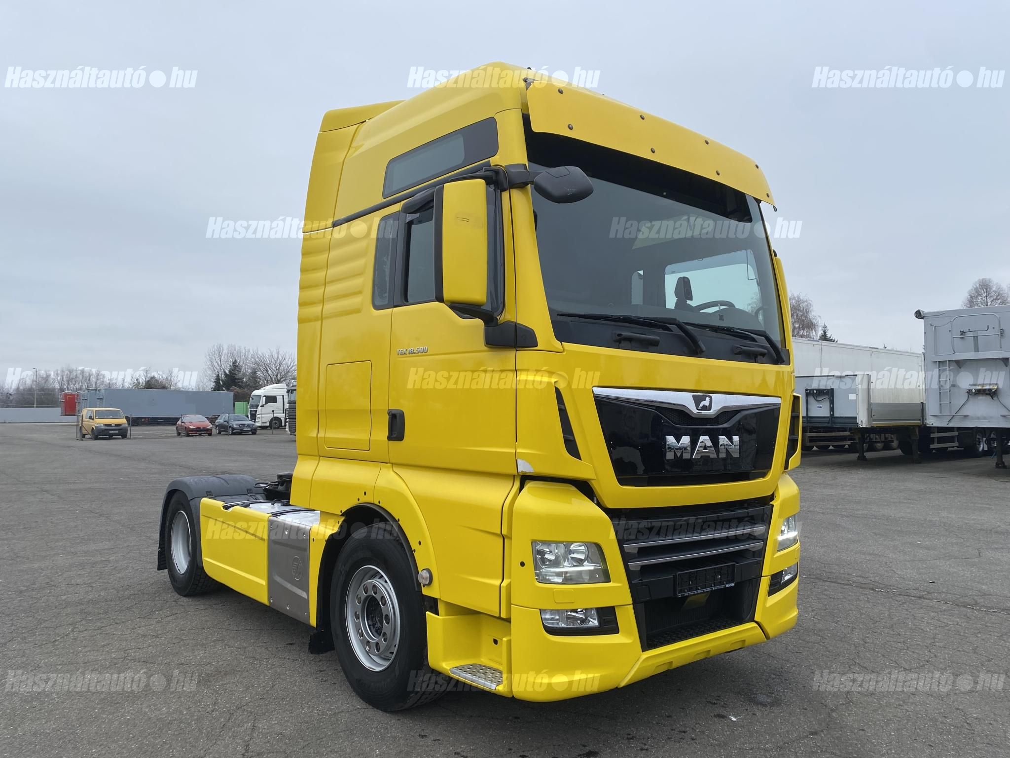 MAN TGX 18.500 XXL, EU6, retarder, automata váltó, tárcsafék, full spoiler, elől laprugó, hátul légrugó. Automata klíma, állítható kormány, állófűtés, ülésfűtés, központi zár, differenciálzár, tempomat, navigáció, ABS, EBS, elektromos ablakok és tükrök, tükörfűtés, aláfutásgátló, rádió, 2 ágy, 2 tank, Ad-blue, hűtő, napellenző, fűthető szélvédő, sávtartó- és távolságtartó elektronika. Tengelytávolság: 3,6m. Gumiméret elől: 385/65 R22,5, hátul: 315/70 R22,5. Gumiállapot az első tengelyen ca. 80%, hátsó tengelyen ca. 50%. Önsúly: 7,965kg. Igény szerint friss műszakival! Uniós adószámmal rendelkező cégek igény szerint áfa mentesen ( nettó) is megvásárolhatják. A hirdetésben szereplő Forintos ár 387 huf/euróra vonatkozó ár! Pontos forintos ár az aktuális napi euró MNB árfolyamától függően kerül kialakításra!